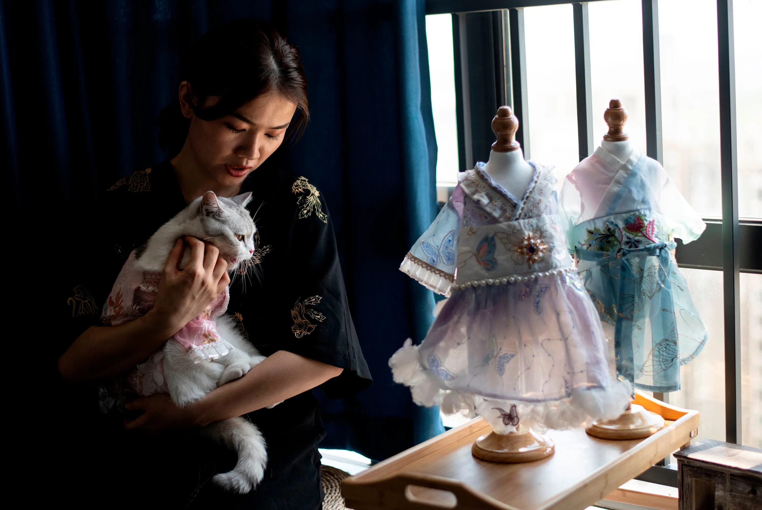This photo taken on August 13, 2020, shows Wu Qiuqiao holding her cat Liu Liu at her house in Changsha China's central Hunan province. (Photo by Noel Celis/AFP Photo)