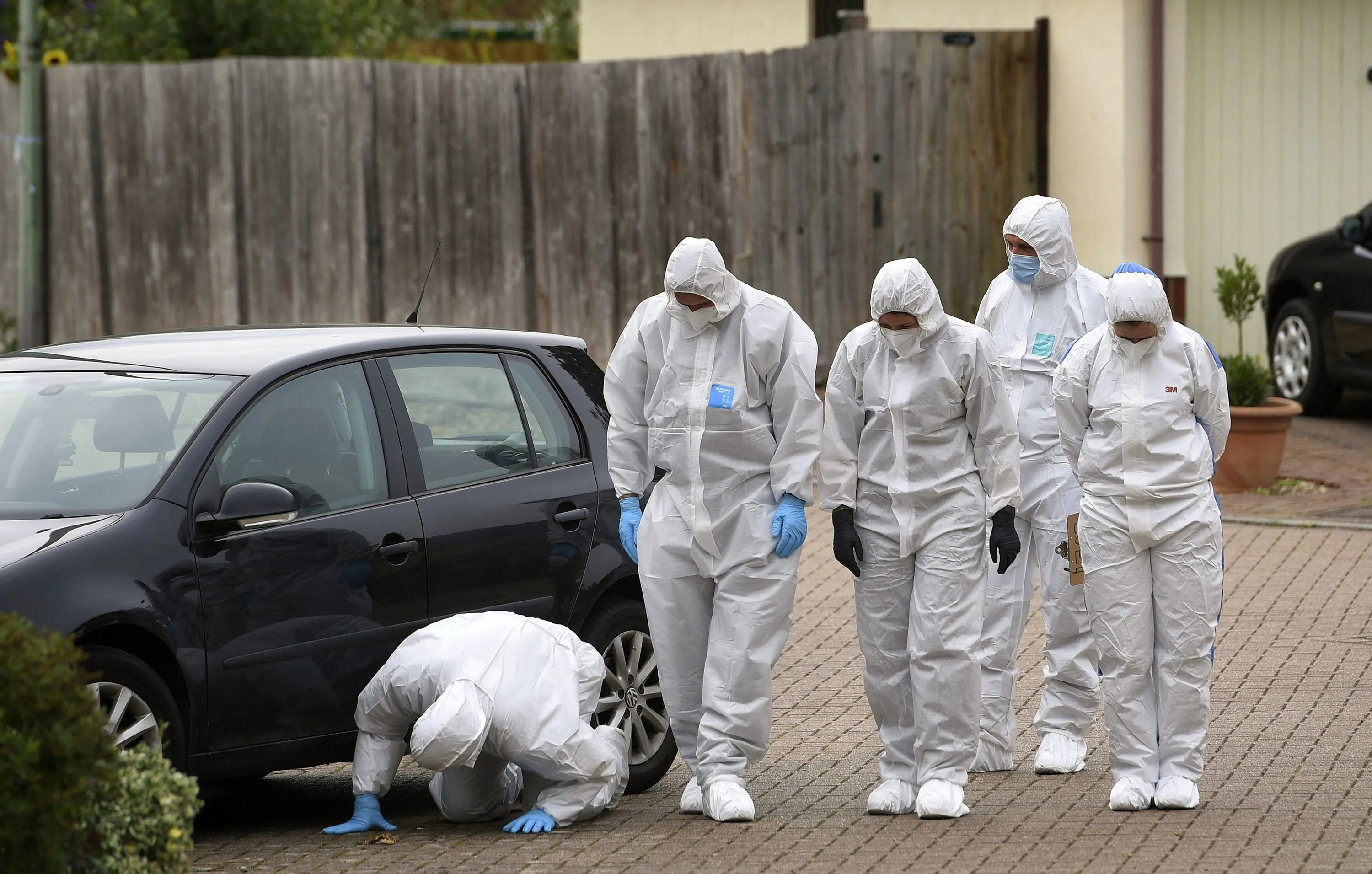 Police officers conduct a search in Kesgrave, England, Monday September 7, 2020, where a 15-year-old student from Kesgrave High School was shot just after 8.40am this morning. British police said a teenager in eastern England has been arrested in connection with the shooting on Monday of a 15-year-old boy on his way to school. (Photo by Joe Giddens/PA Wire via AP Photo)