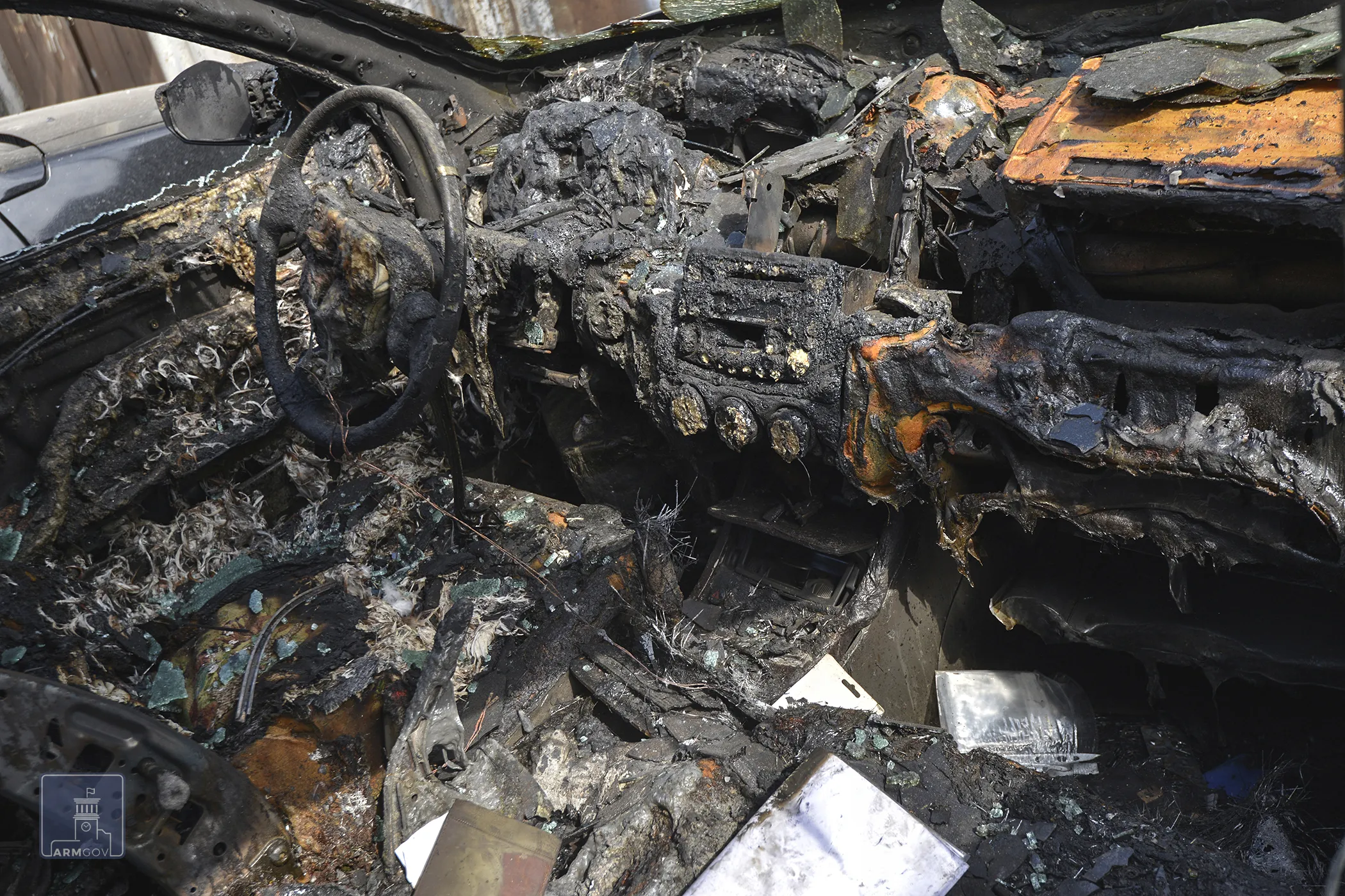 This photo issued by Armenian Foreign Ministry shows a car destroyed by shelling in Stepanakert, the self-proclaimed Republic of Nagorno-Karabakh, Azerbaijan, Tuesday, September 29, 2020. (Photo by Armenian Foreign Ministry via AP Photo)