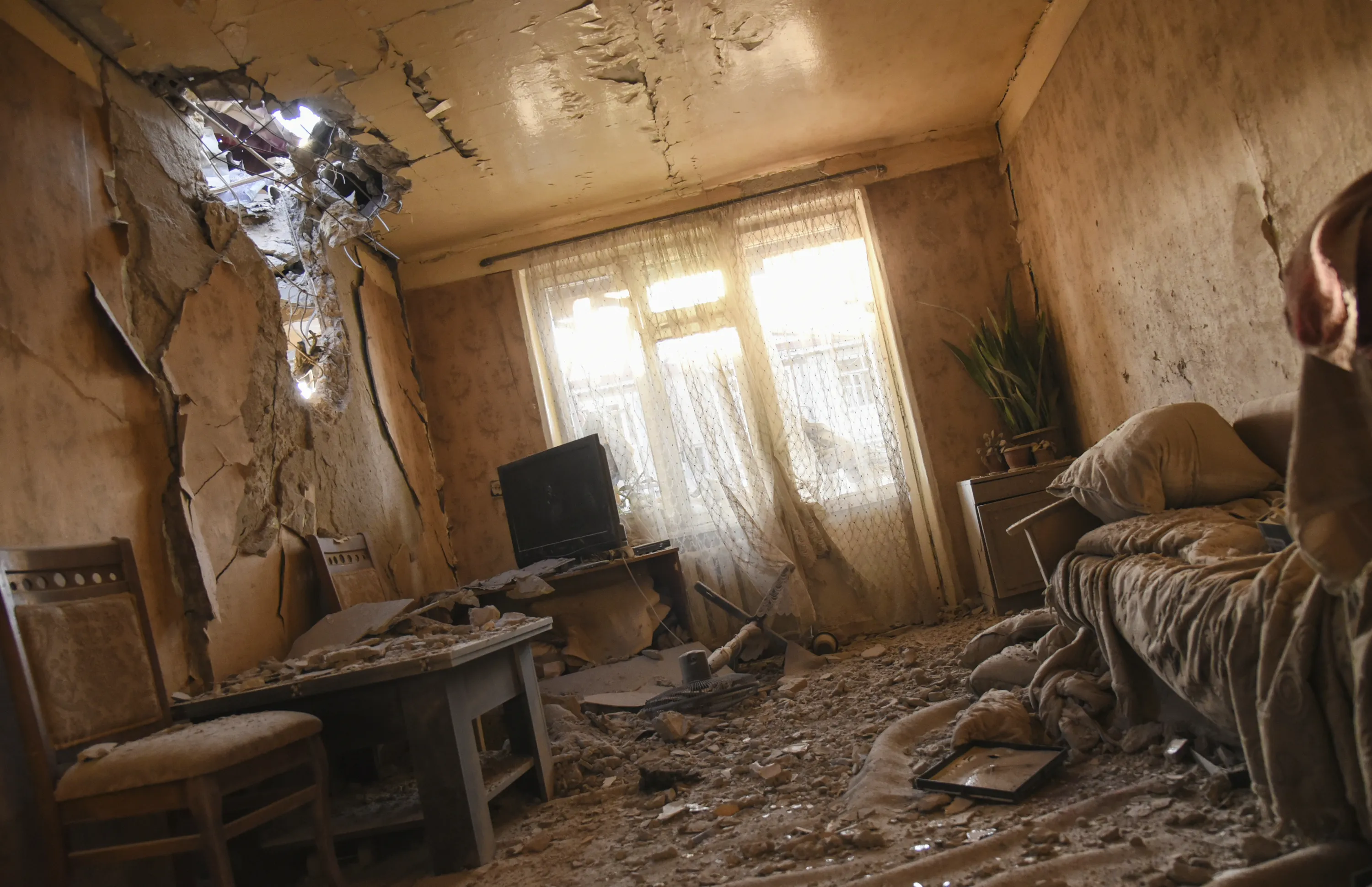 Damages are seen inside an apartment in a residential area after shelling during a military conflict in self-proclaimed Republic of Nagorno-Karabakh, Stepanakert, Azerbaijan, Saturday, October 3, 2020. The fighting is the biggest escalation in years in the decades-long dispute over the region, which lies within Azerbaijan but is controlled by local ethnic Armenian forces backed by Armenia. (Photo by David Ghahramanyan/NKR InfoCenter PAN Photo via AP Photo)