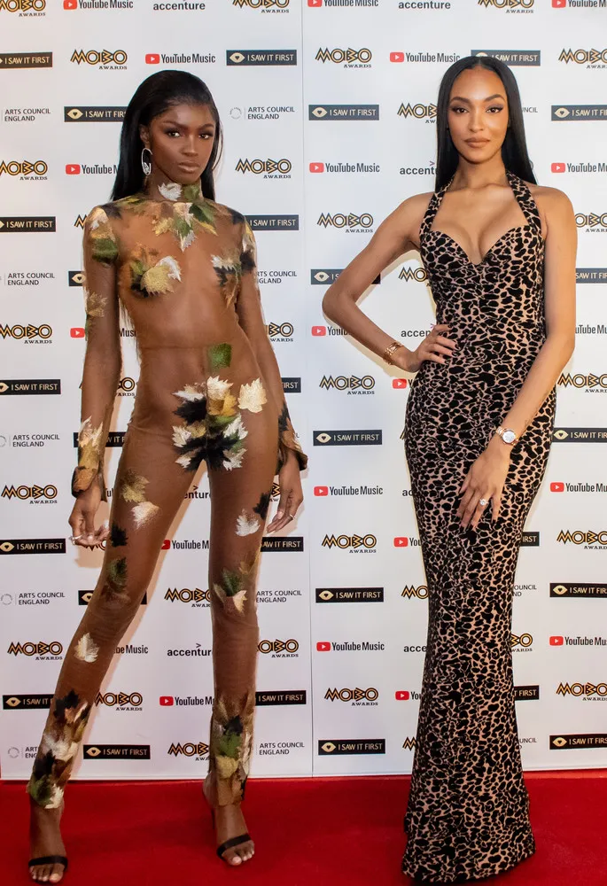 In this image released on December 09, Leomie Anderson and English model and actress Jourdan Dunn attend the 2020 MOBO Awards held at Exhibition London on December 07, 2020 in London, England. The MOBO Awards will be live-streamed on YouTube at 7pm and broadcast on BBC One at 10.45pm. (Photo by Michael Tubes/MOBO Organisation/Rex Features/Shutterstock)