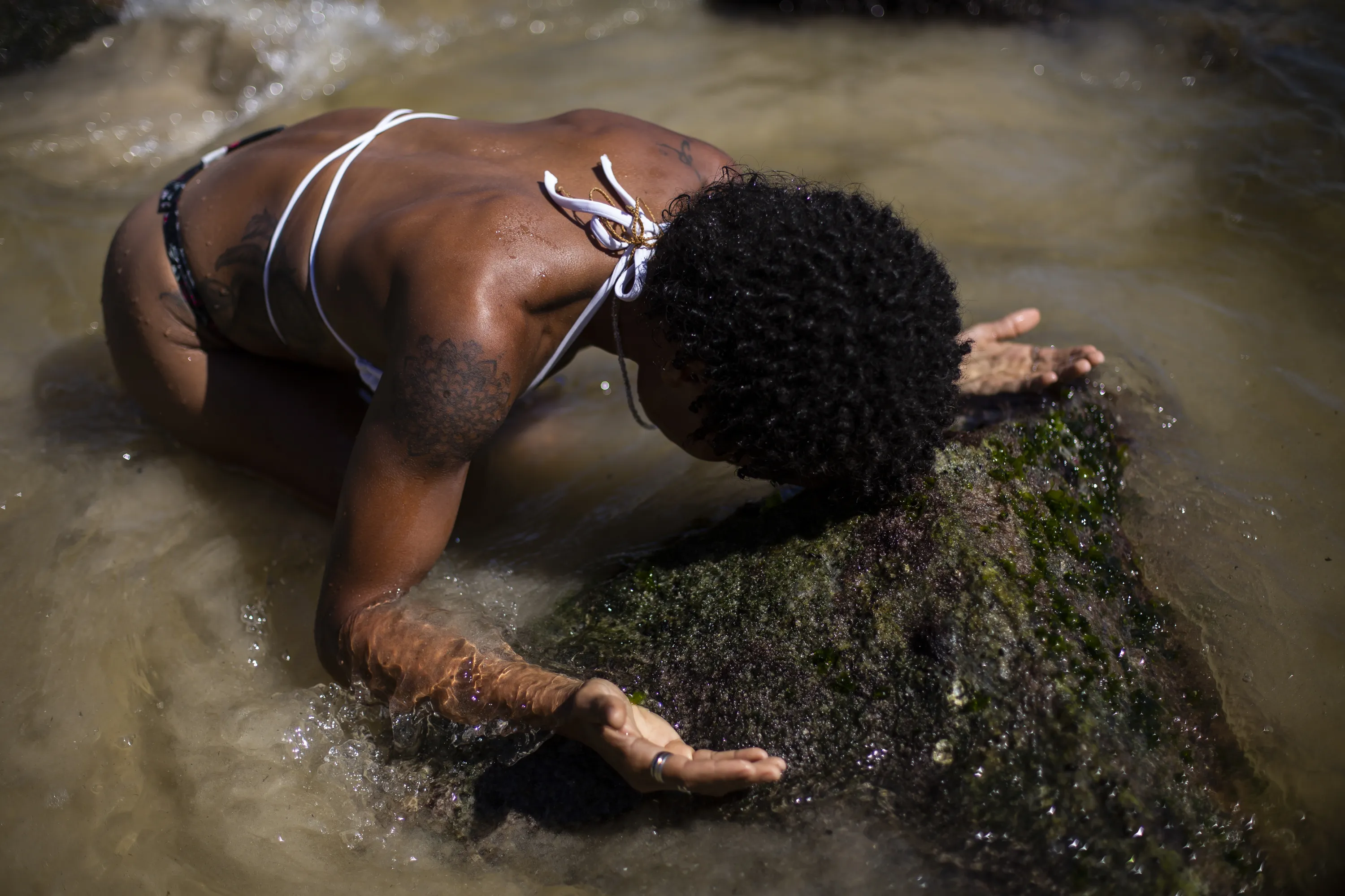 Shirley Azedi, who said she's lost work as a housekeeper due to the COVID-19 pandemic, prays during a ceremony in honor of the Goddess of the Sea Yemanja on Praia Vermelha beach to mark the end of the year in Rio de Janeiro, Brazil, on New Year's Eve, Thursday, December 31, 2020. Beaches will be closed on the night of new year's, to help curb the spread of the new coronavirus. (Photo by Bruna Prado/AP Photo)