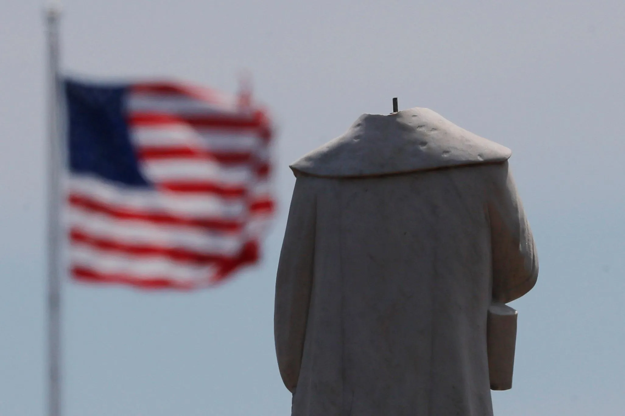 The head of a statue of Christopher Columbus was pulled off overnight amid protests against racial inequality in the aftermath of the death in Minneapolis police custody of George Floyd, in Boston, Massachusetts, U.S., June 10, 2020. (Photo by Brian Snyder/Reuters)