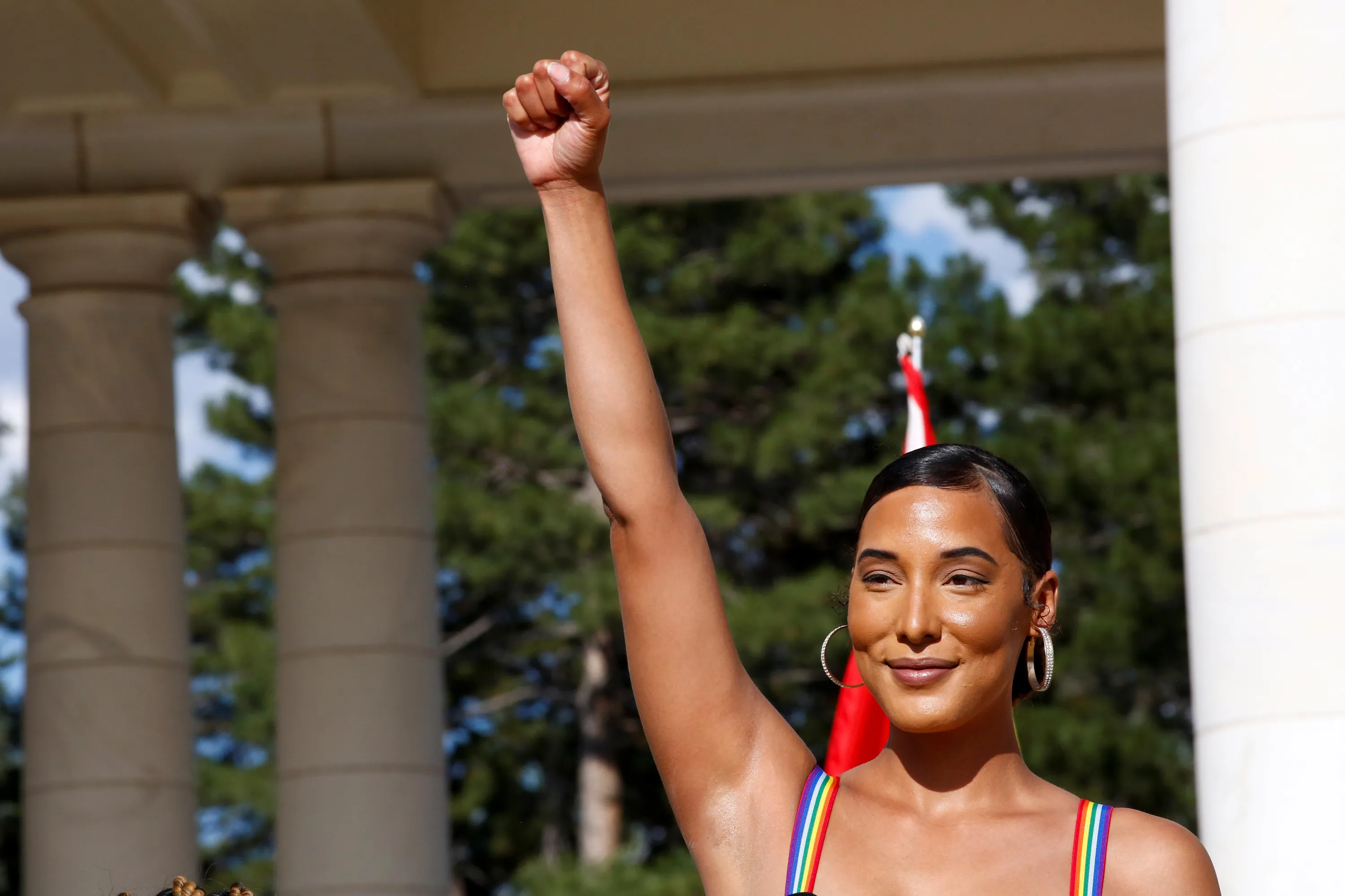 Zim Gagne raises her fist at the Pride Liberation March, an event highlighting the Black Lives Matter movement within the LGBTQ community in Denver, Colorado, U.S., June 14, 2020. (Photo by Kevin Mohatt/Reuters)