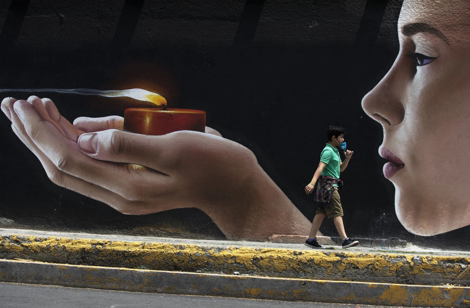 A child walks outside the San Lorenzo Tezonco Iztapalapa on the outskirts of Mexico City, Tuesday, September 1, 2020, amid the new coronavirus pandemic. (Photo by Marco Ugarte/AP Photo)