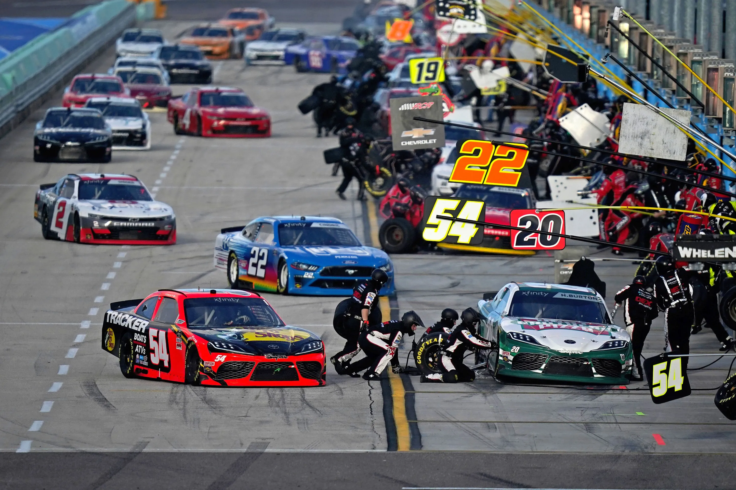 NASCAR Xfinity Series driver Ty Dillon (54) and the field pit under caution in the Contender Boats 250 at Homestead-Miami Speedway in Miami, FL, USA on February 27, 2021. (Photo by Jasen Vinlove/USA TODAY Sports)