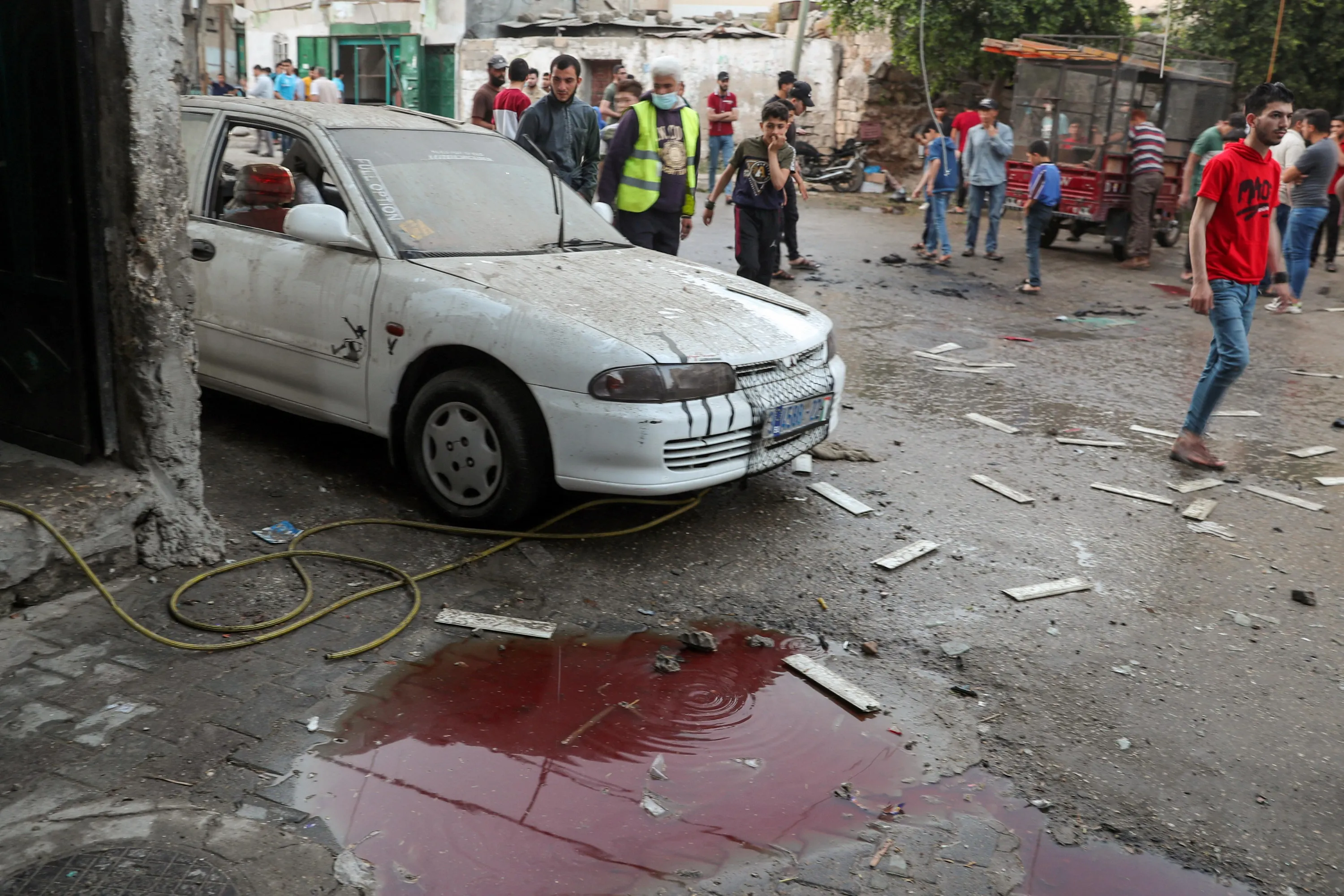 People gather at the site where Palestinians were killed amid a flare-up of Israeli-Palestinian violence, in the northern Gaza Strip on May 10, 2021. (Photo by Mohammed Salem/Reuters)