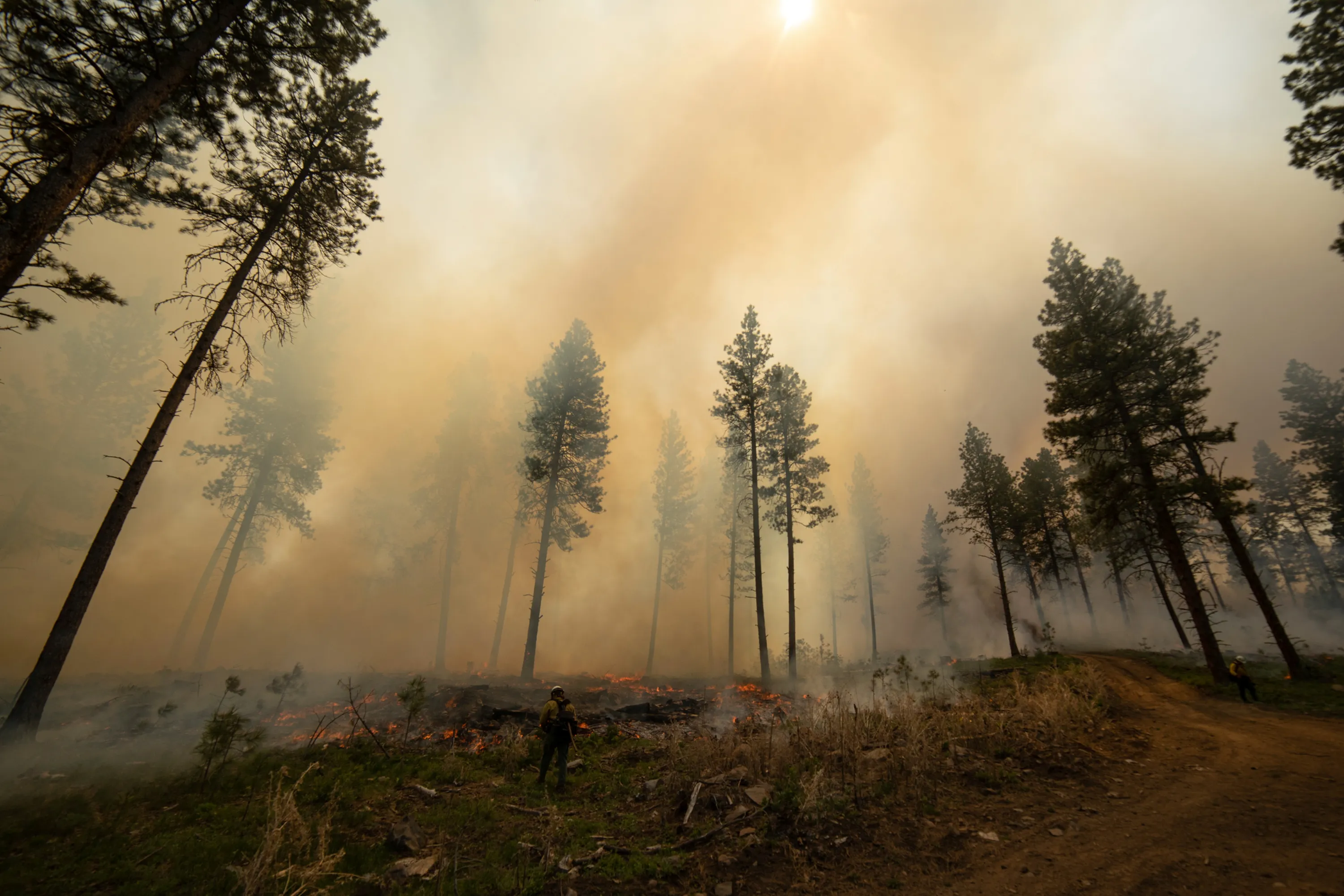 Firefighters conduct a prescribed burn in the Wallowa-Whitman National Forest, Oregon, U.S., May 14, 2021. (Photo by Ilie Mitaru/Reuters)