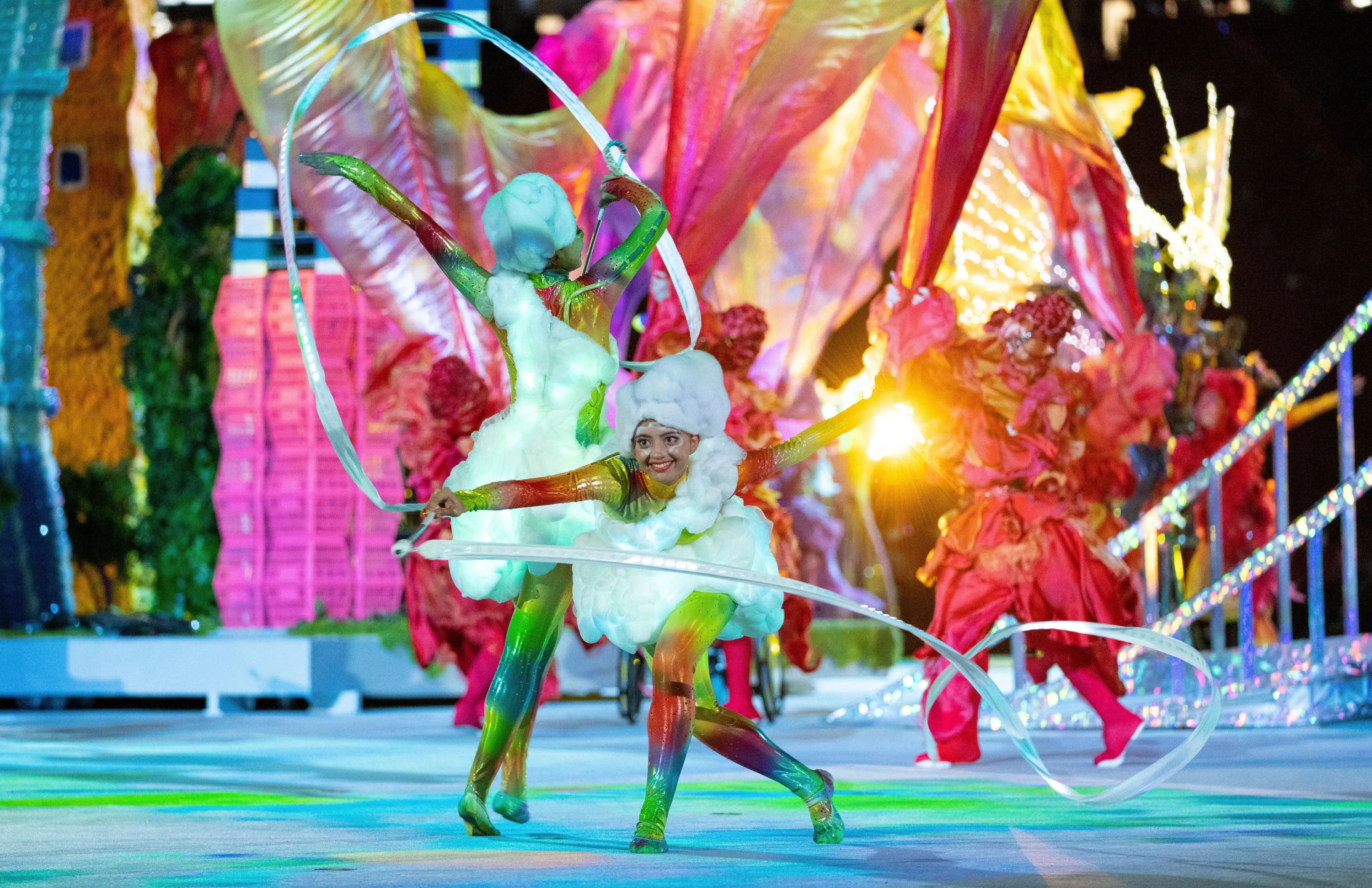 Performers take part in the closing ceremony at the Tokyo Paralympic Games in Tokyo on September 5, 2021. (Photo by The Yomiuri Shimbun via AP Images)