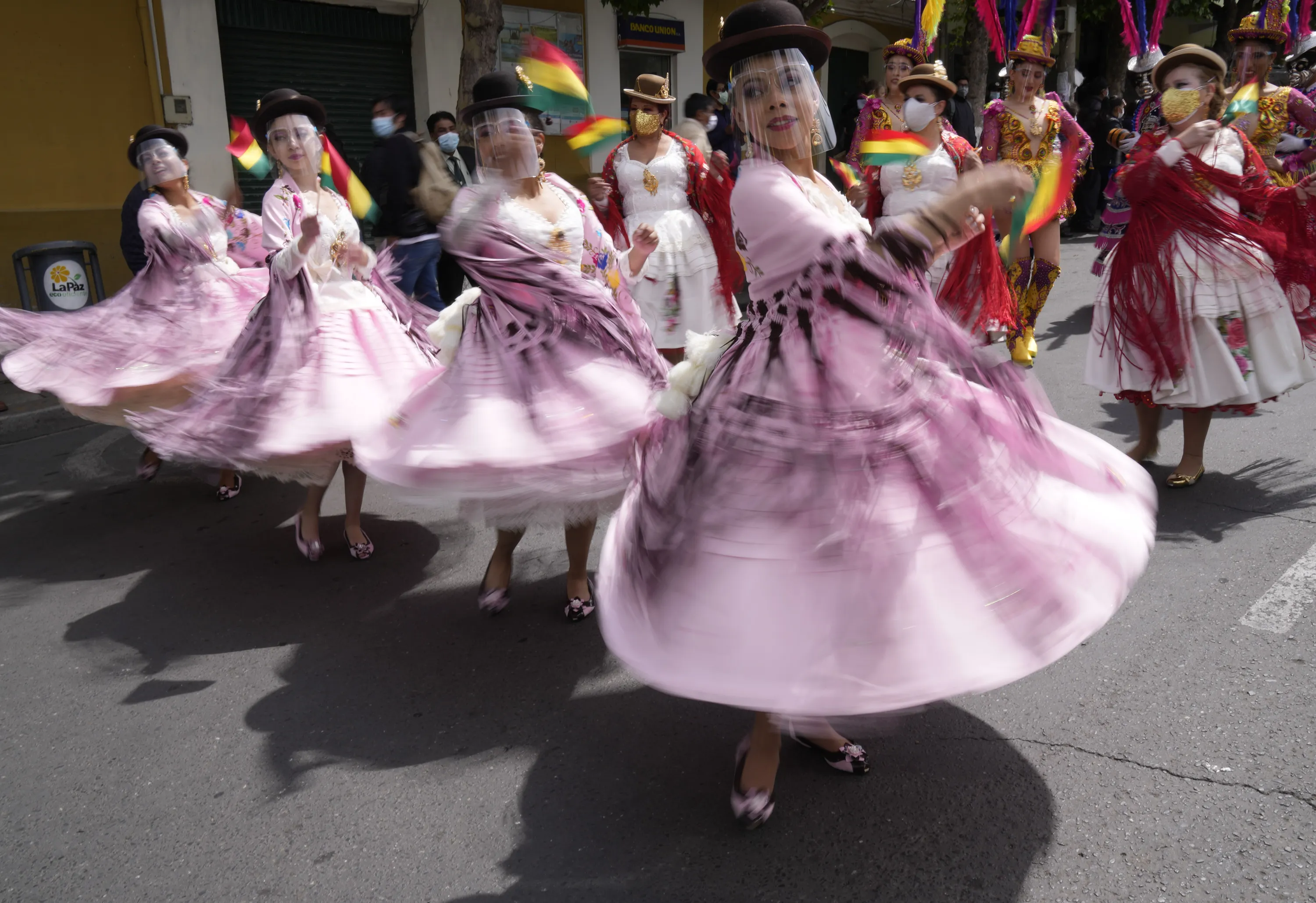 Dancers perform to celebrate the National Day of the Morenada Dance in La Paz, Bolivia, Tuesday, September 7, 2021. La Morenada is a folk dance from the Andes that was inspired by slaves brought to the region during the colonial era. (Photo by Juan Karita/AP Photo)