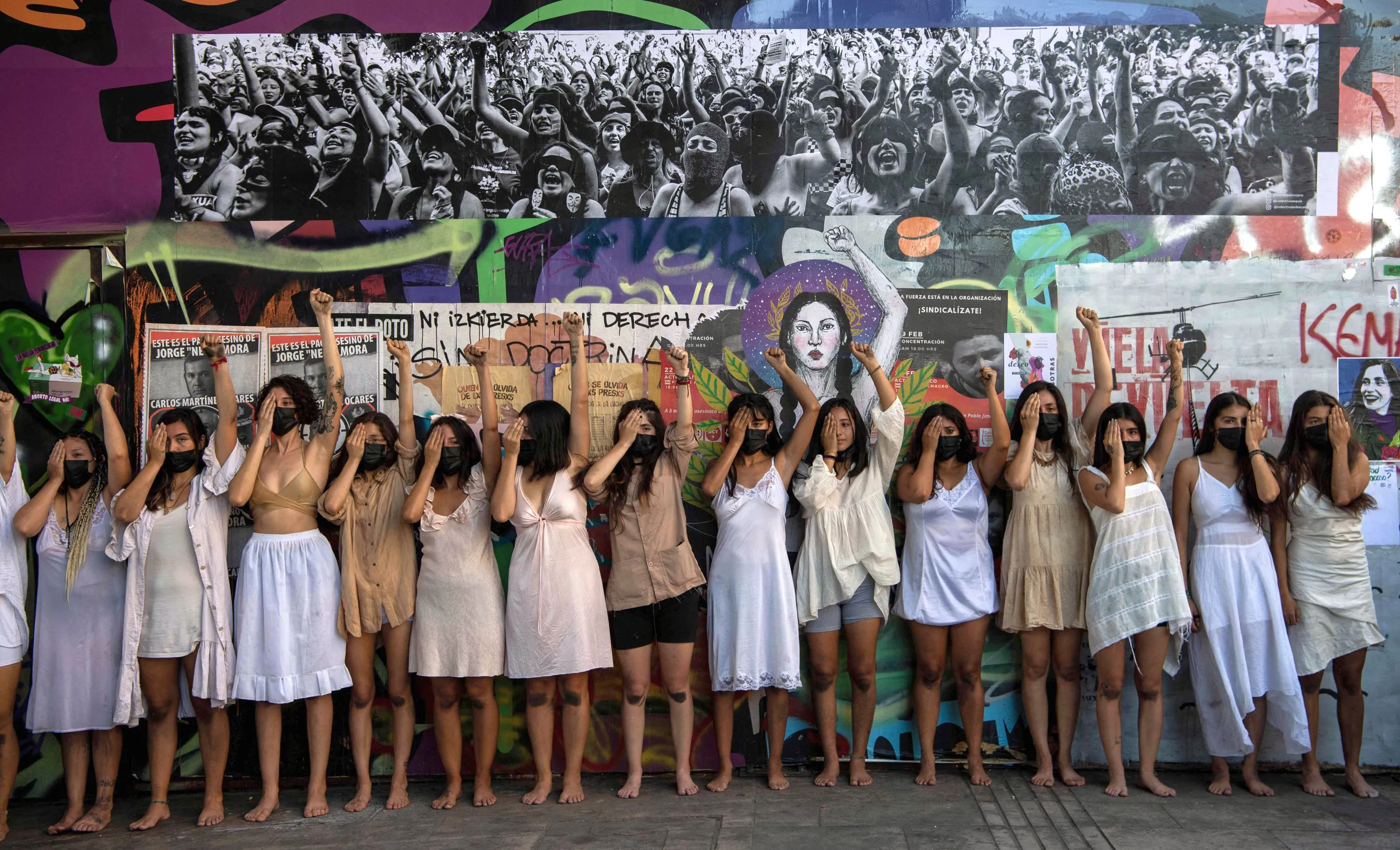 Chilean women take part in a demonstration to commemorate the International Women's Day in Santiago, on March 8, 2021. (Photo by Martin Bernetti/AFP Photo)
