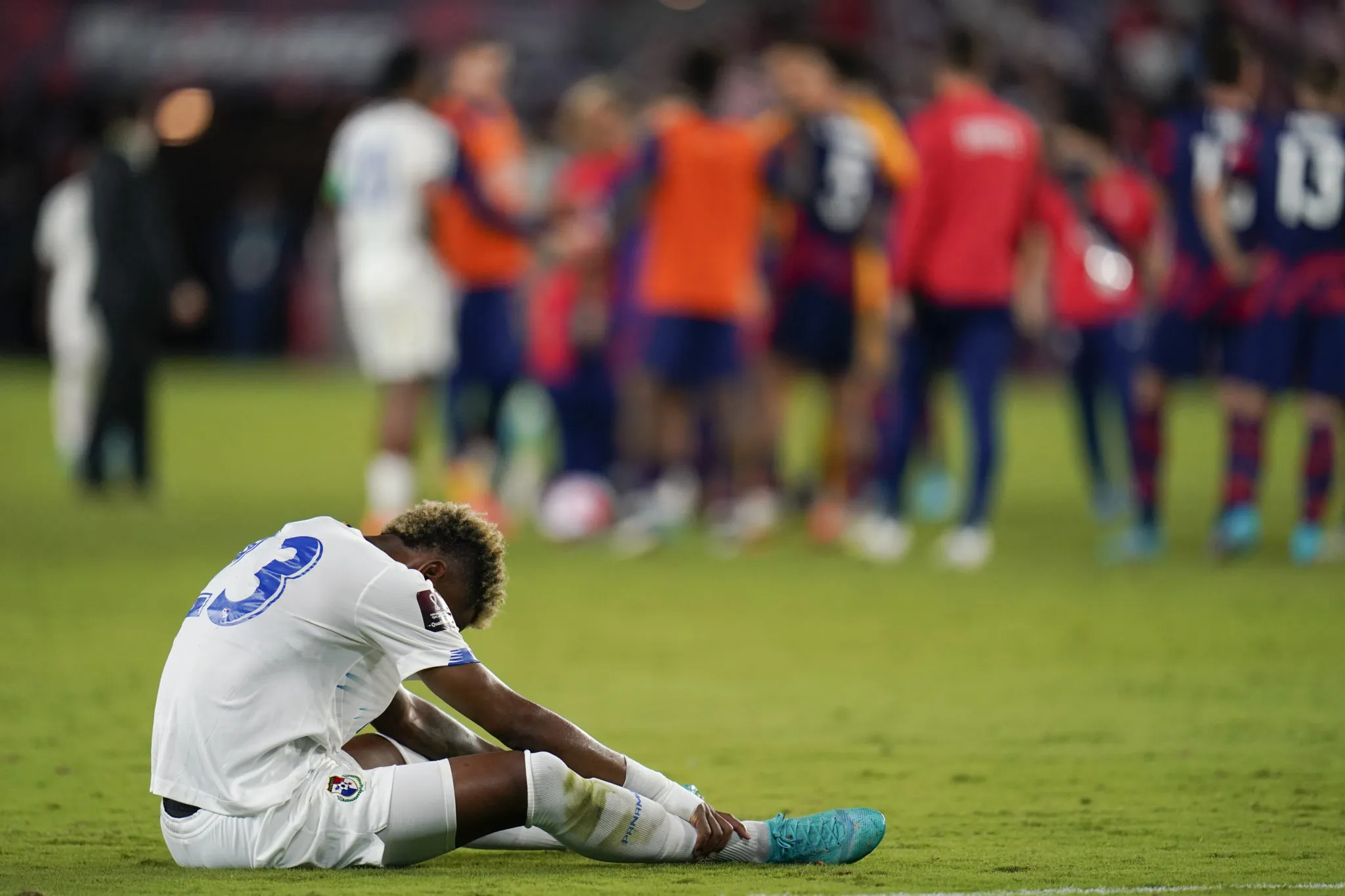 Panama's Michael Murillo reacts after his team lost to the United States during a FIFA World Cup qualifying soccer match, Sunday, March 27, 2022, in Orlando, Fla. The U.S. won 5-1. (Photo by Julio Cortez/AP Photo)