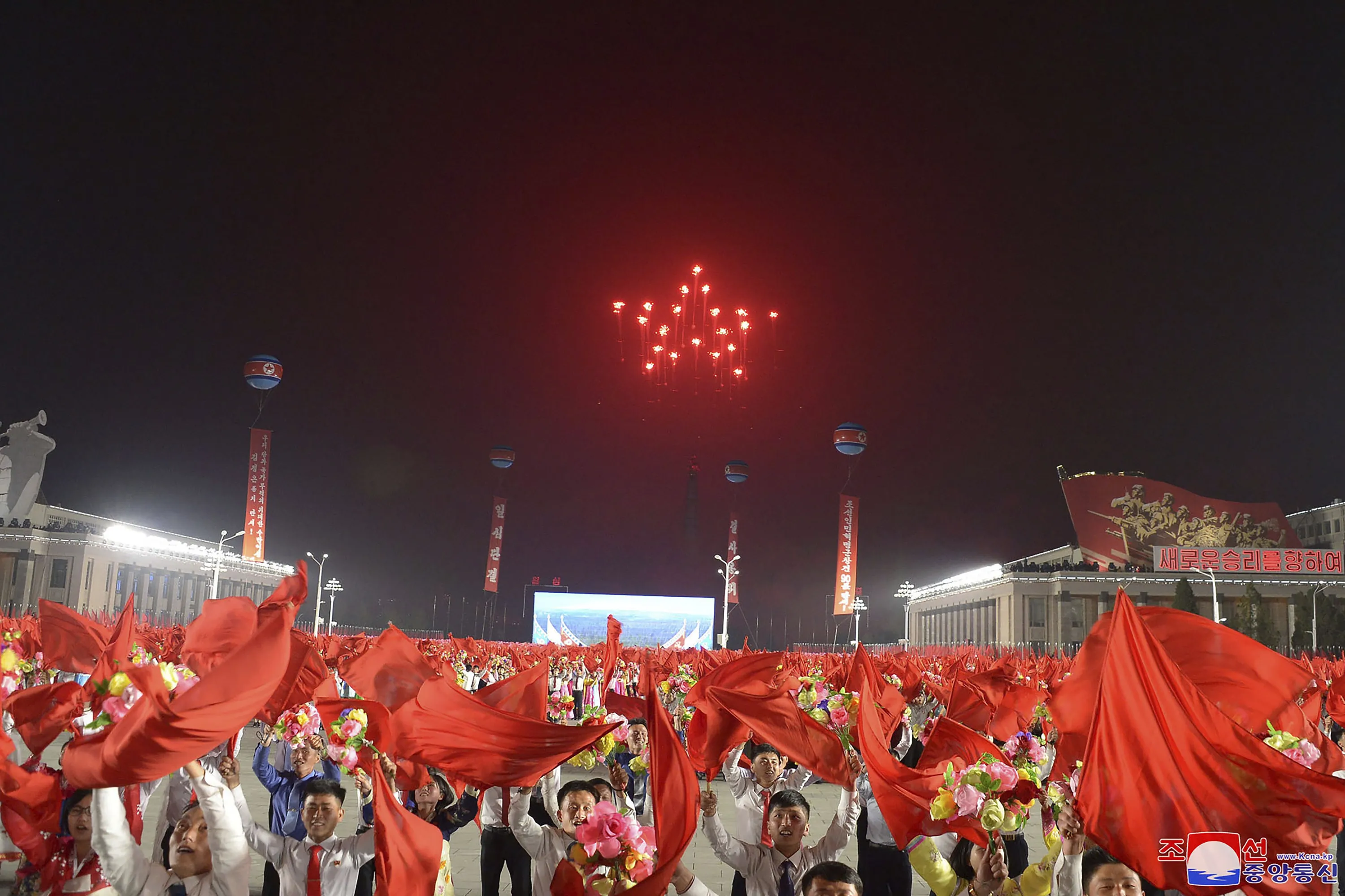 This photo provided by the North Korean government, shows a military parade to mark the 90th anniversary of North Korea's army at the Kim Il Sung Square in Pyongyang, North Korea Monday, April 25, 2022. (Photo by Korean Central News Agency/Korea News Service via AP Photo)