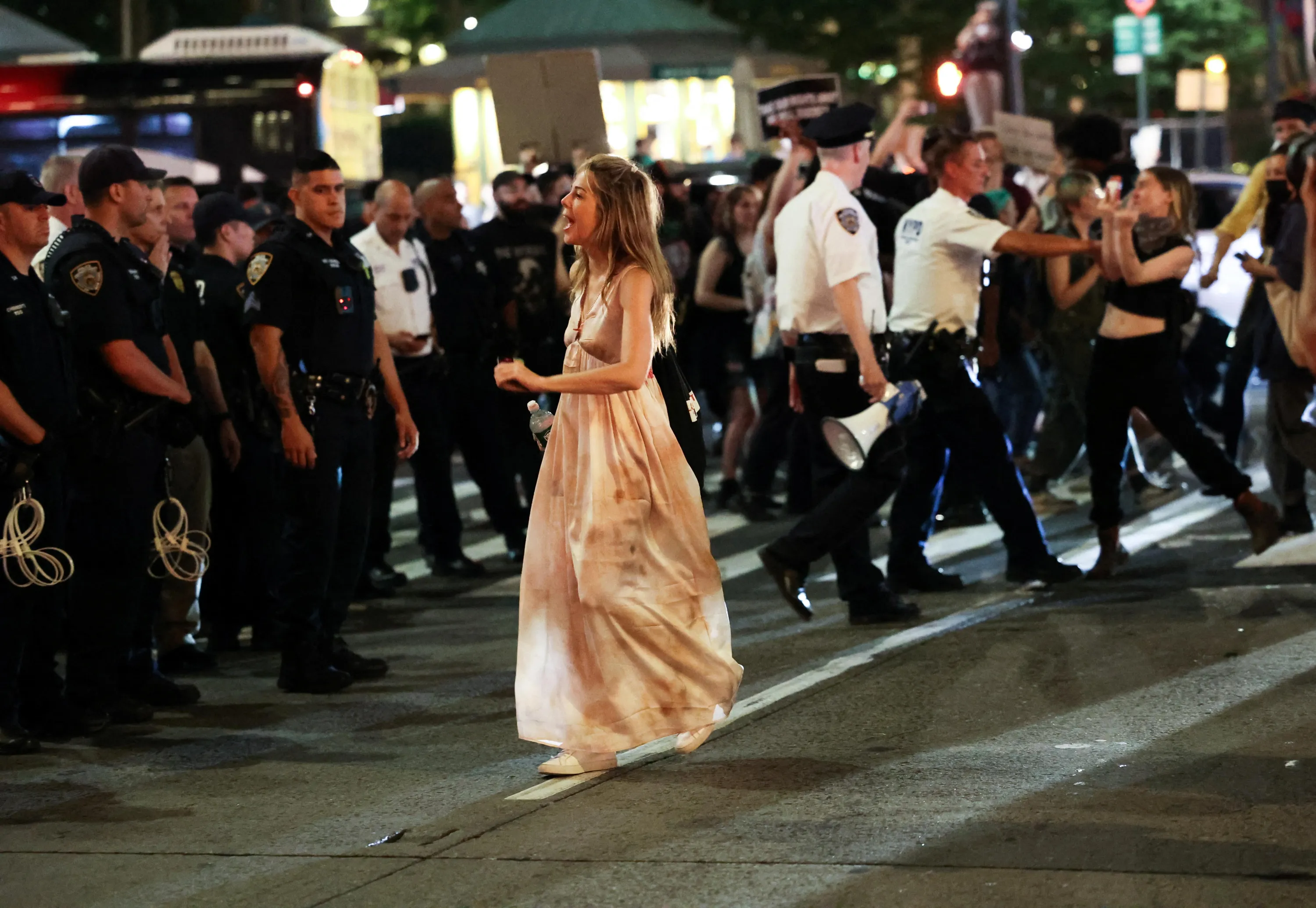 Members of the NYPD clear people from the street protesting the Supreme Court decision to overturn Roe v Wade abortion decision in New York City, New York, U.S., June 24, 2022. (Photo by Caitlin Ochs/Reuters)