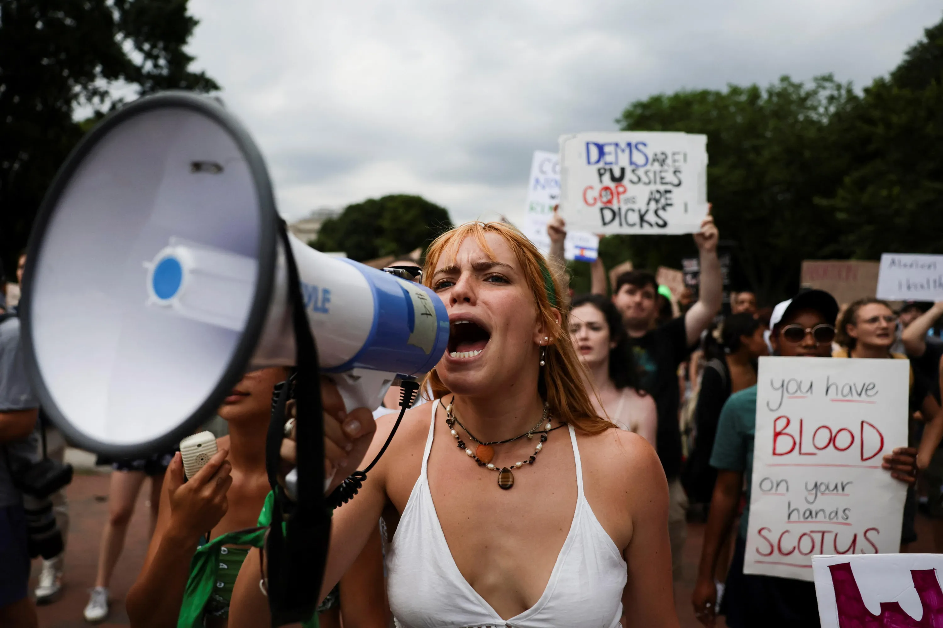 Abortion rights supporters protest after the United States Supreme Court ruled in the Dobbs v Women's Health Organization abortion case, overturning the landmark Roe v Wade abortion decision, in Washington, U.S., June 26, 2022. (Photo by Evelyn Hockstein/Reuters)