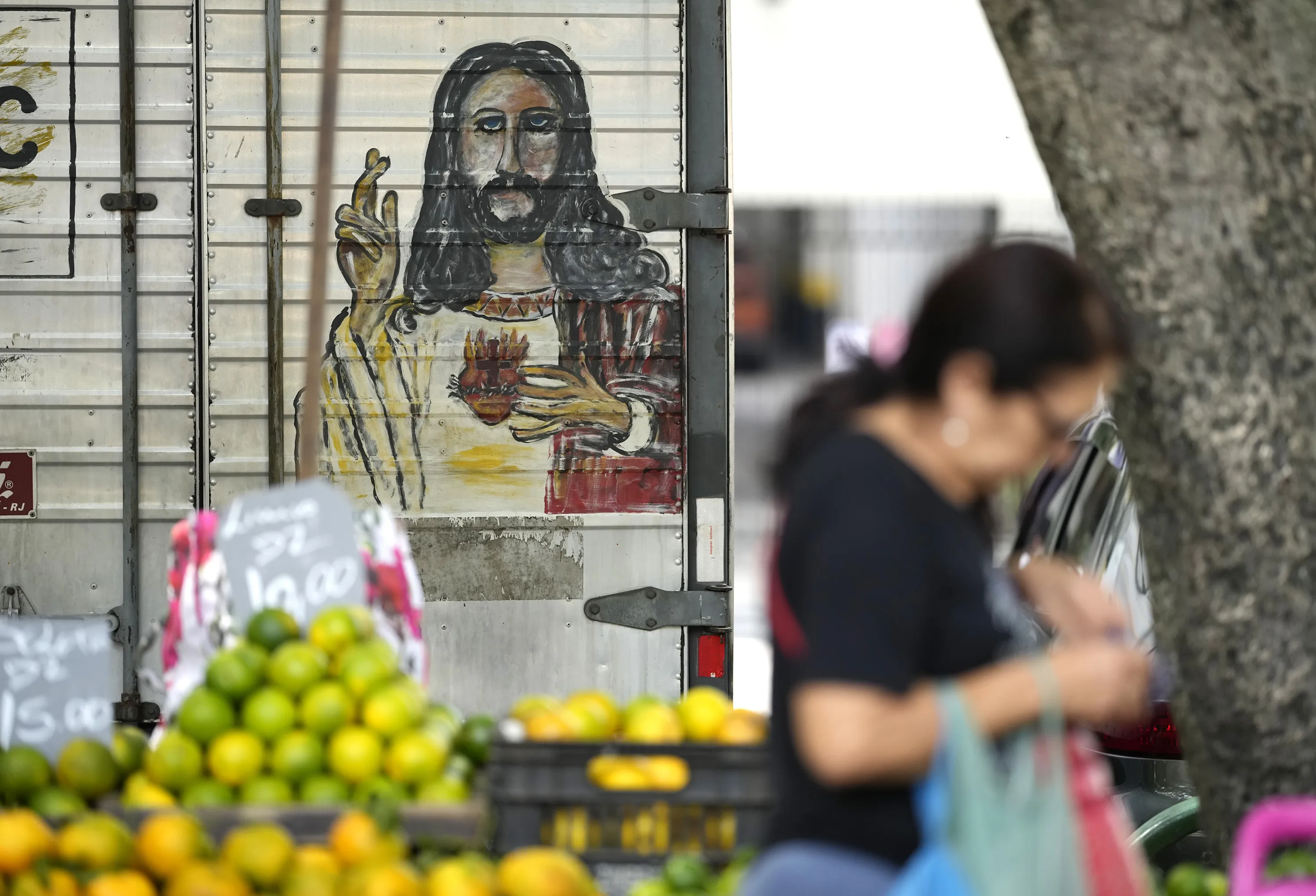A woman walks past a fruit vendor at a street market in Rio de Janeiro, Brazil, Wednesday, May 11, 2022. High inflation in Brazil is eroding the buying power of consumers and angering potential voters, who fault President Jair Bolsonaro for not doing enough about it. (Photo by Silvia Izquierdo/AP Photo)