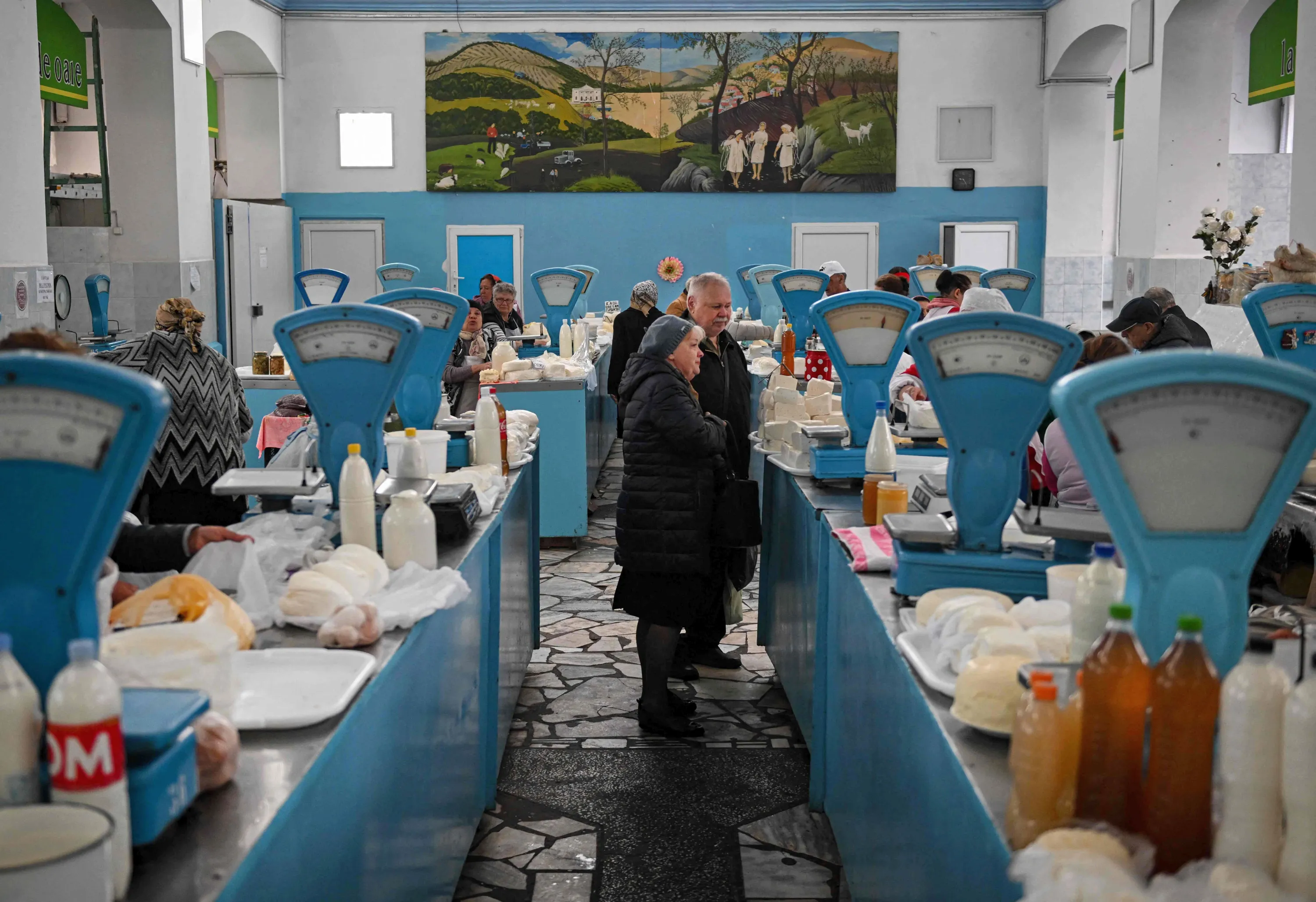 People buy dairy products at the central market in Chisinau, on April 29, 2022. Russia on April 28, 2022 raised the alarm over “acts of terrorism” in Moldova's Moscow-backed breakaway region of Transnistria after separatist authorities reported several attacks there this week. Fears of destabilisation in the region grew after a Russian general said the Kremlin's offensive aimed to create a land corridor through southern Ukraine to Transnistria. (Photo by Daniel Mihailescu/AFP Photo)