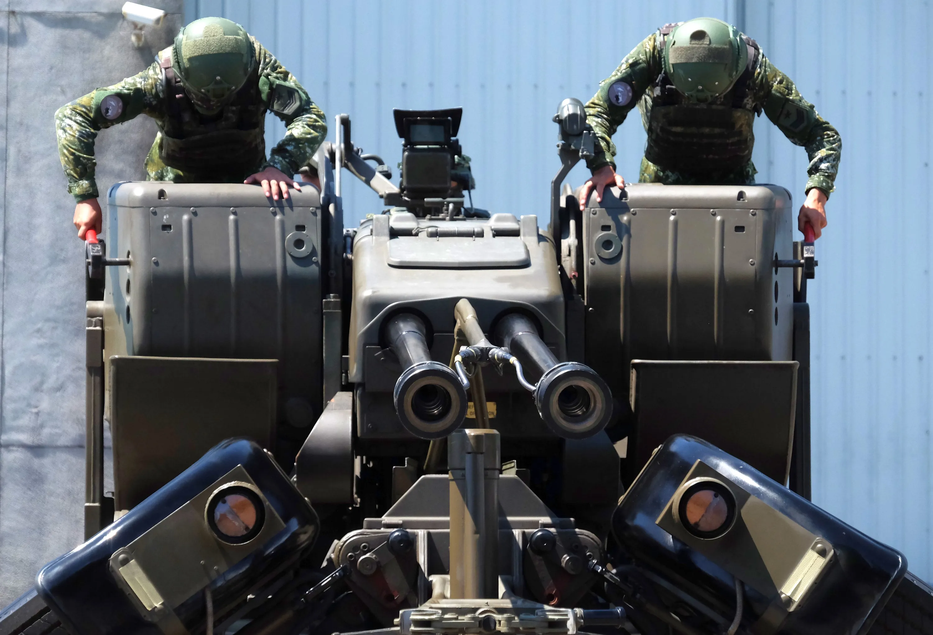 Taiwanese soldiers operate a Oerlikon 35mm twin cannon anti-aircraft gun at a base in Taiwan's southeastern Hualien county on Thursday, August 18, 2022. Taiwan is staging military exercises to show its ability to resist Chinese pressure to accept Beijing's political control over the island. (Photo by Johnson Lai/AP Photo)