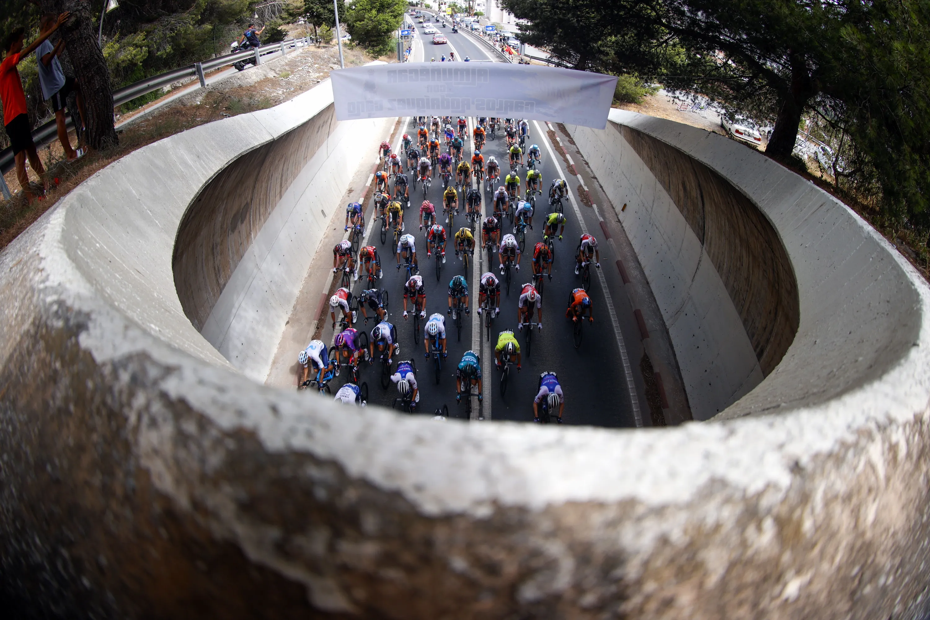 Riders during the twelfth stage of La Vuelta cycling race between Salobrena in Granada, and Penas Blancas, in Estepona, Malaga, Andalusia, Spain, of 192,7km, on 01 September 2022. (Photo by Javier Lizon/EPA/EFE)