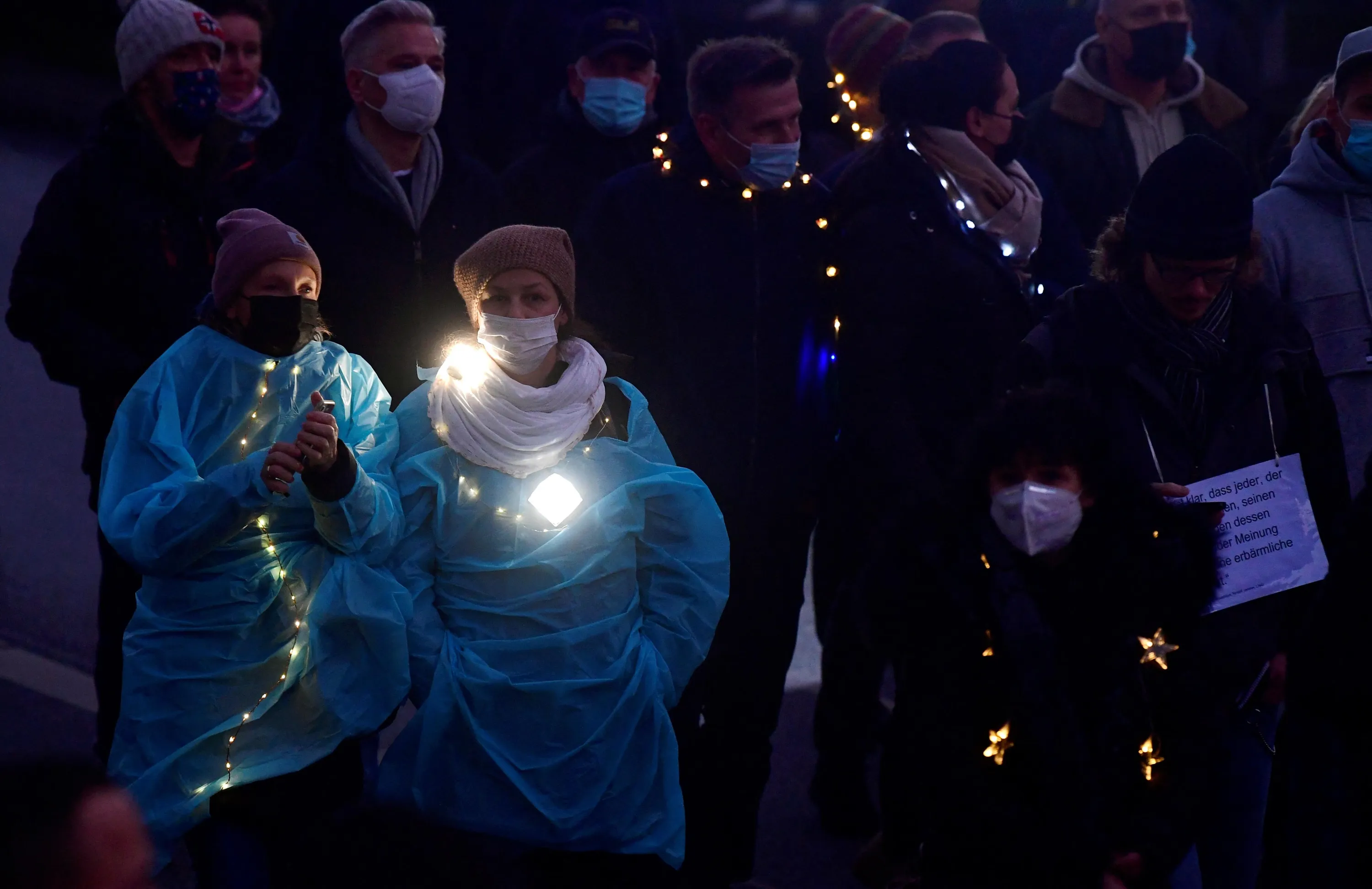 People take part in a demonstration against coronavirus disease (COVID-19) measures, in Hamburg, Germany December 18, 2021. (Photo by Fabian Bimmer/Reuters)