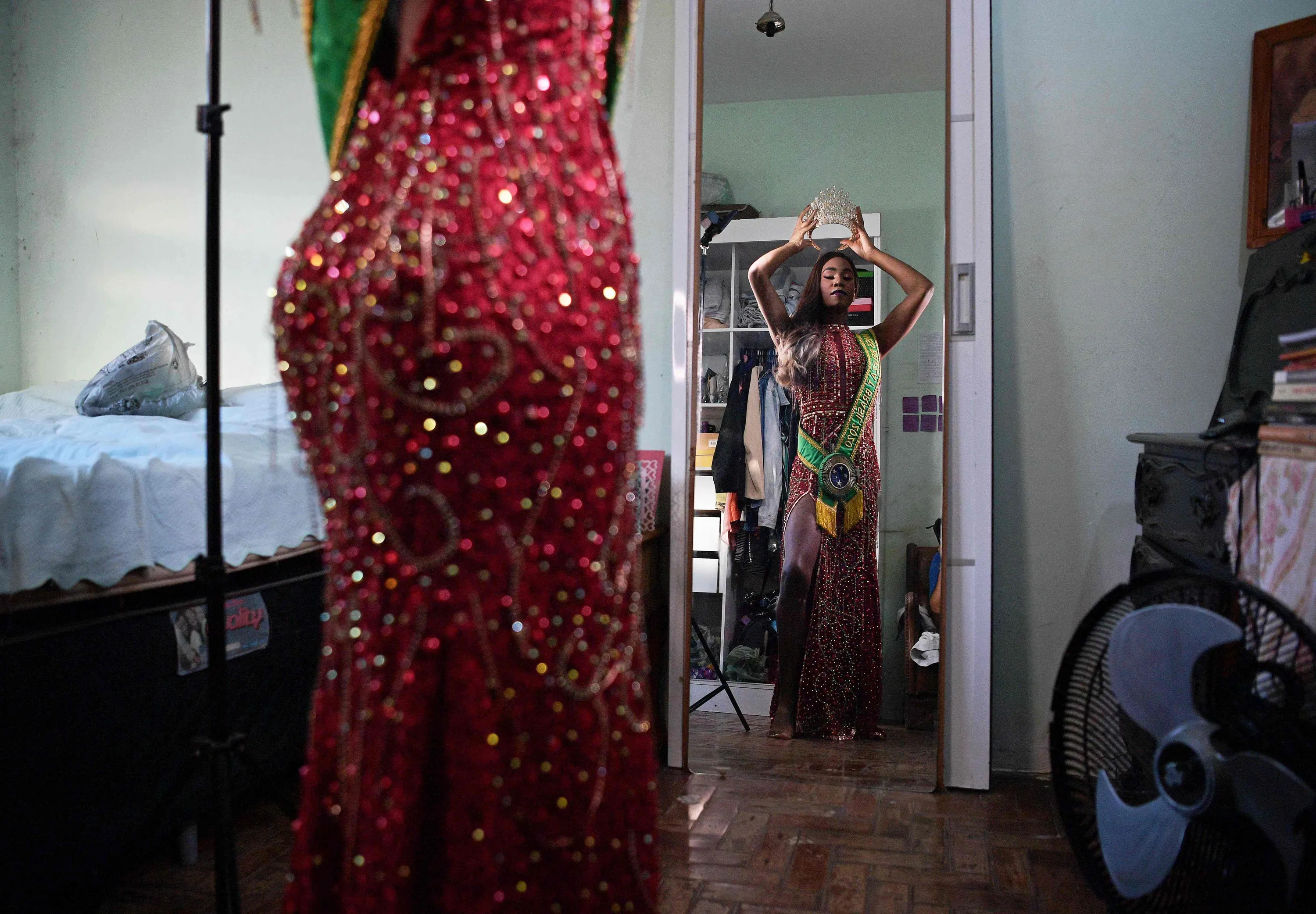 Transgender model Eloa Rodrigues, 29, looks in the mirror as she gets ready to pose for pictures for AFP at her house in Rio de Janeiro, Brazil, on May 5, 2022. Eloa will represent Brazil in the Miss International Queen contest, the trans “Miss Universe” on June 25 in Thailand. The Brazilian beauty queen knows how lucky she is: in the world's deadliest country for trans people, she is daring to live out her dreams. (Photo by Carl de Souza/AFP Photo)