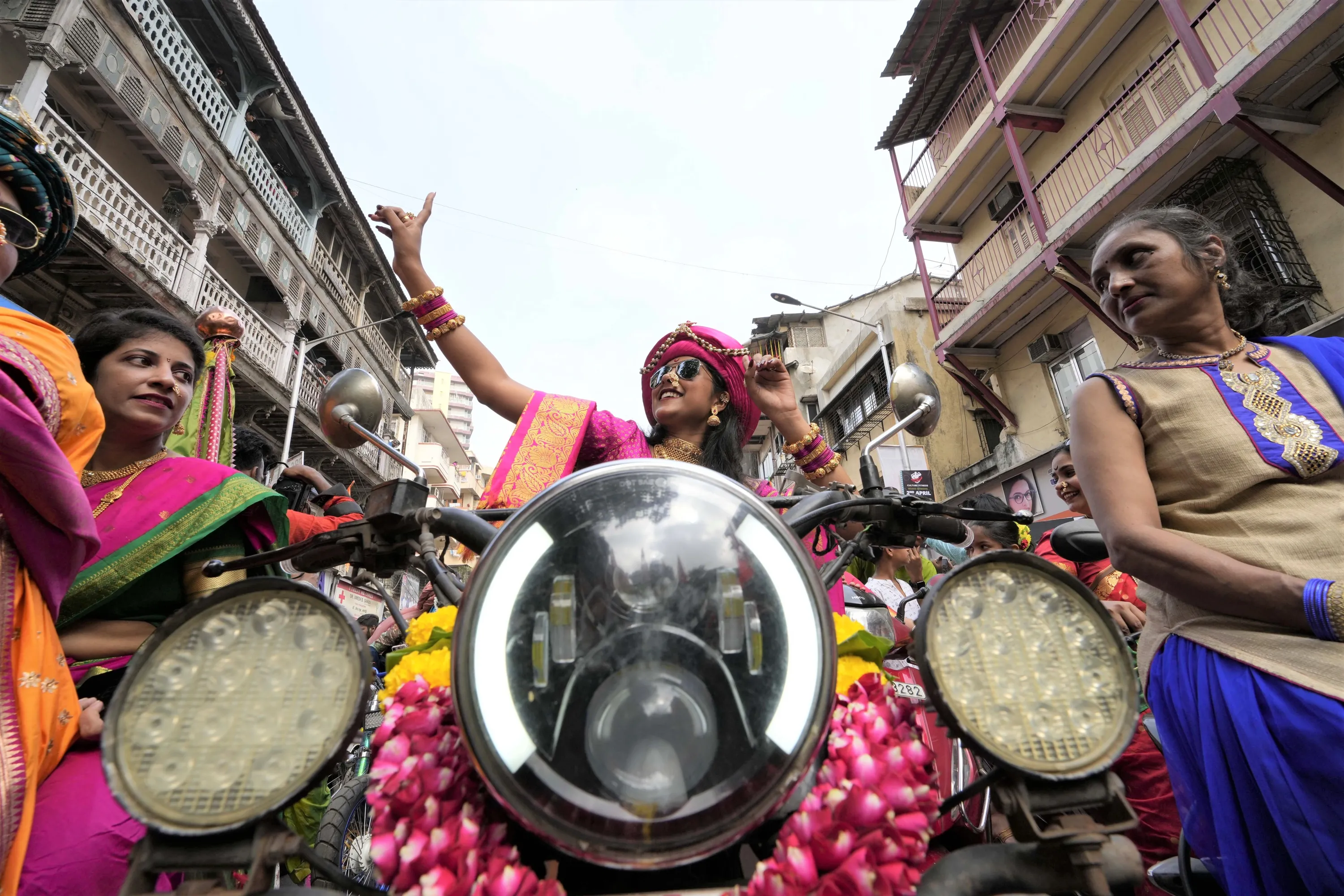 Women dressed in traditional attire dance during a procession to mark Gudi Padwa, or the Marathi new year, in Mumbai, India, Saturday, April 2, 2022. (Photo by Rajanish Kakade/AP Photo)