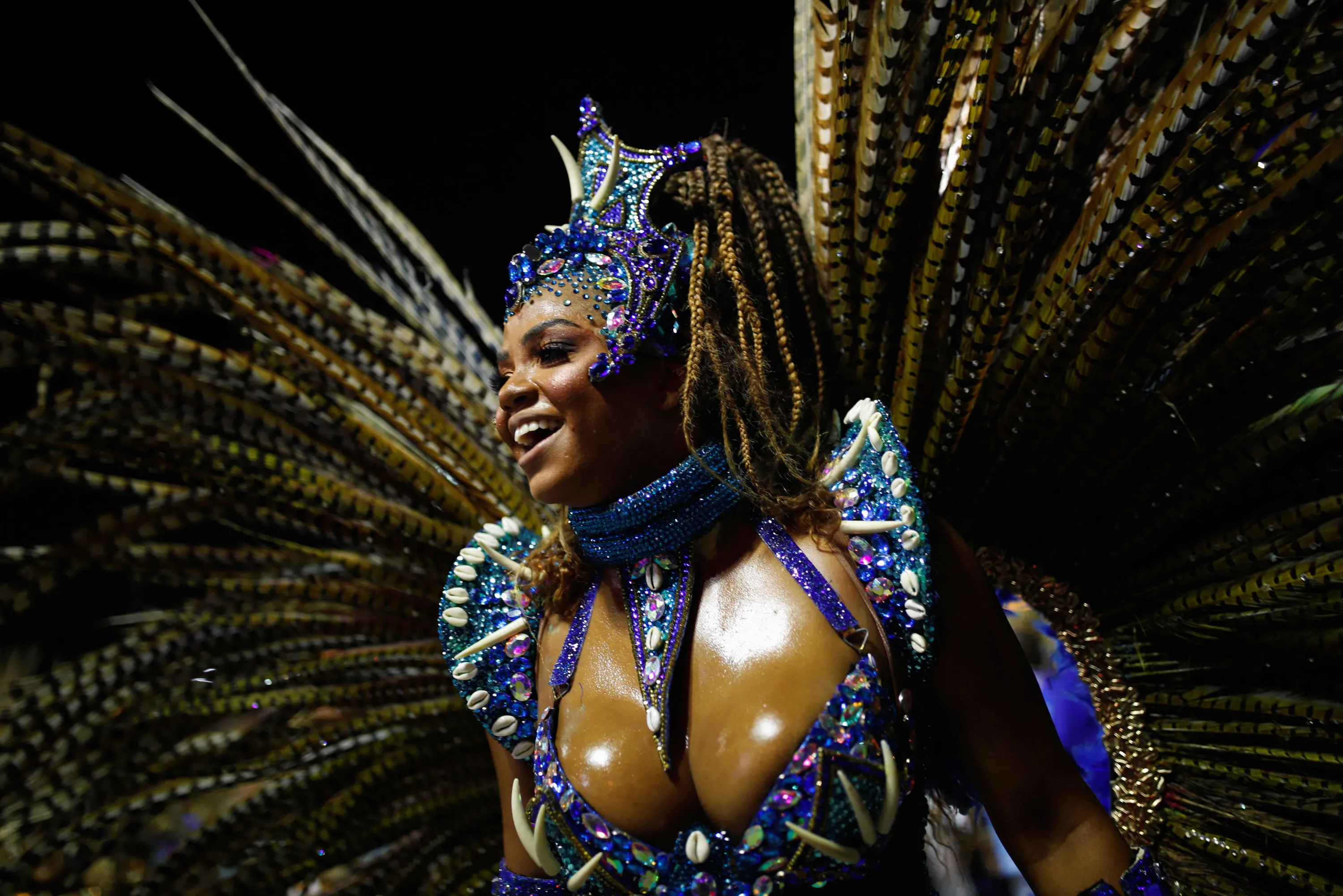 Drums queen Bianca Monteiro from Portela samba school performs during the second night of the Carnival parade at the Sambadrome in Rio de Janeiro, Brazil, April 23, 2022. (Photo by Amanda Perobelli/Reuters)
