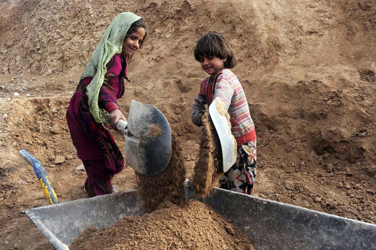 Afghan internal refugee children work at a traditional brick factory on the outskirts of Herat on January 7, 2013. In 2012 alone, spreading conflict in Afghanistan has forced more than 166,000 Afghans to flee their homes, bringing the total number of people internally displaced by conflict to at least 460,000 since the fall of the Taliban in late 2001 with conditions for the displaced falling well below international standards, according to a 2012 study by the Norwegian Refugee council. (Photo by Aref Karimi/AFP Photo)