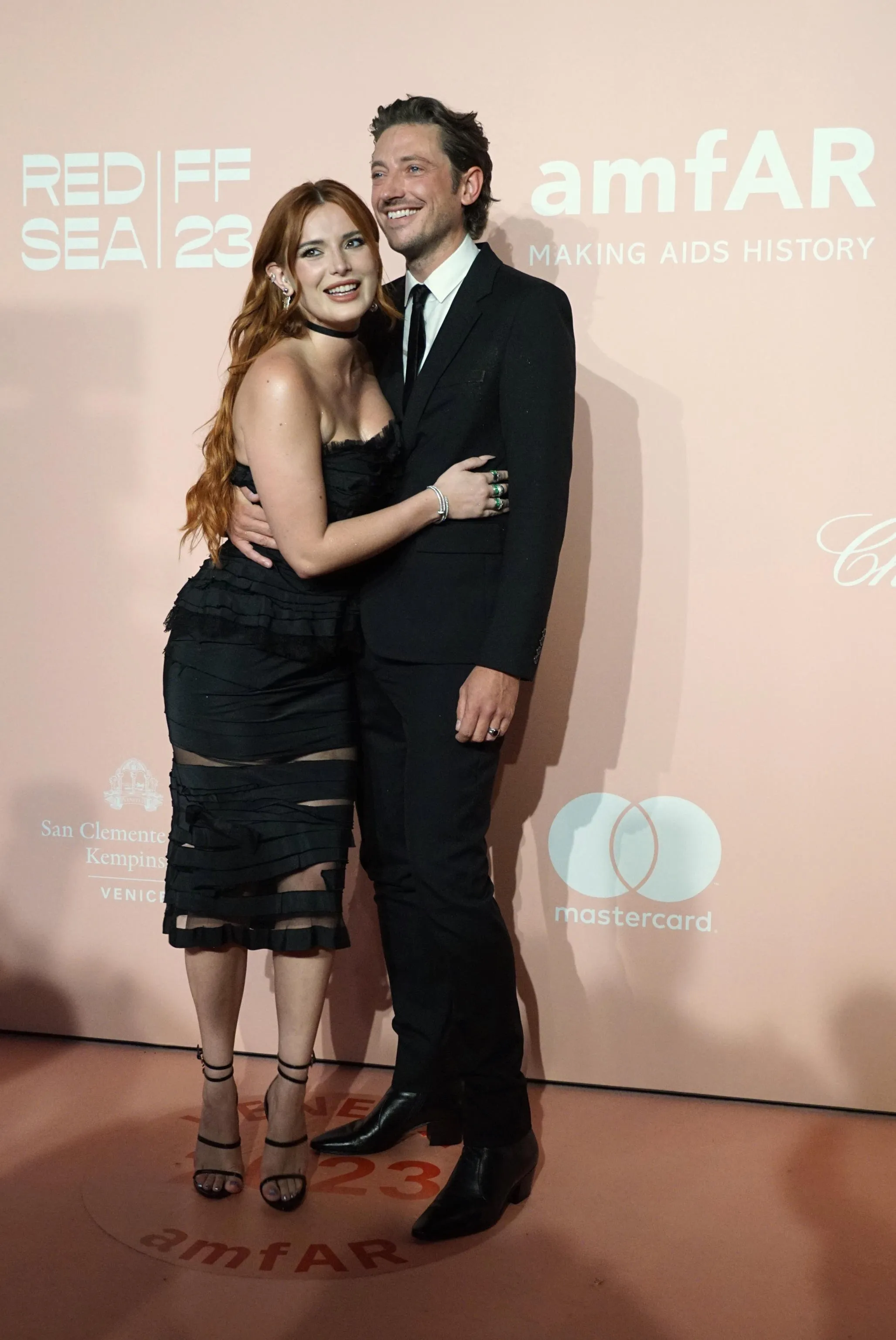 American actress Bella Thorne and fiancé Mark Emms attend the amfAR gala Venezia 2023 presented The Red Sea International Film Festival on September 03, 2023 in Venice, Italy. (Photo by Andrea Merola/EPA/EFE/Rex Features/Shutterstock)
