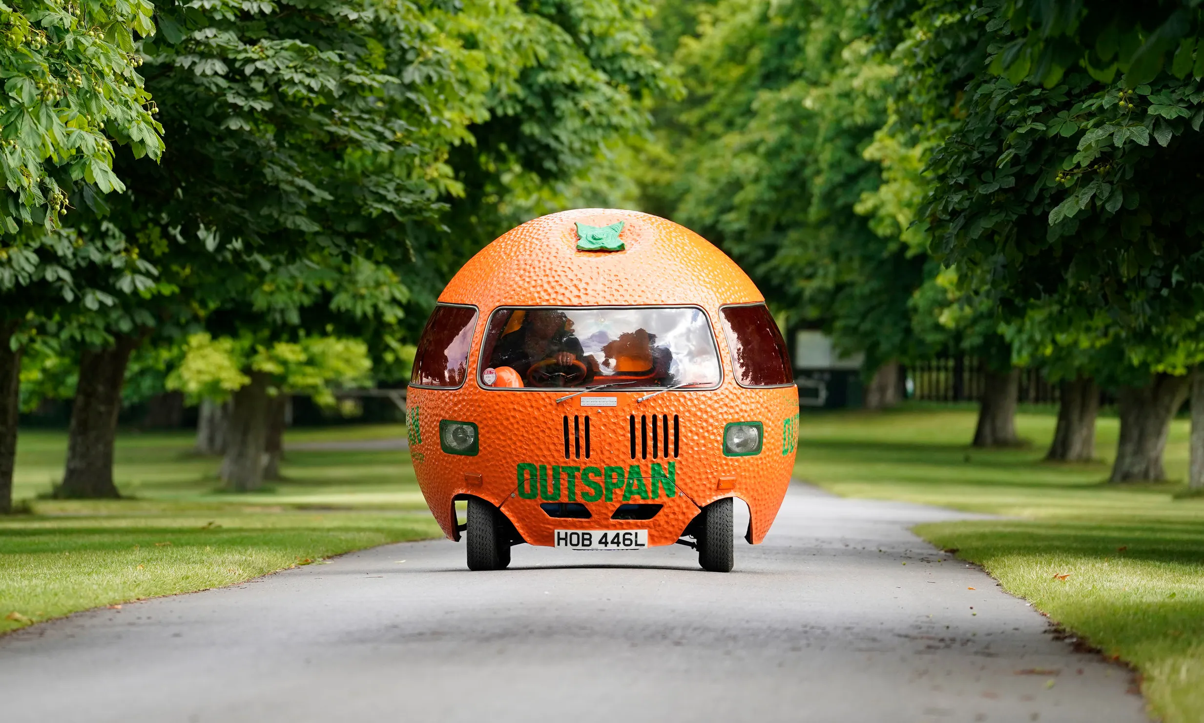 A Mini Outspan Orange is driven around the grounds during a preview for the opening of “The Story of Motoring in 50 Objects” exhibition in celebration of the 50th anniversary of the National Motor Museum at Beaulieu, Hampshire on Friday, July 1, 2022. (Photo by Andrew Matthews/PA Images via Getty Images)