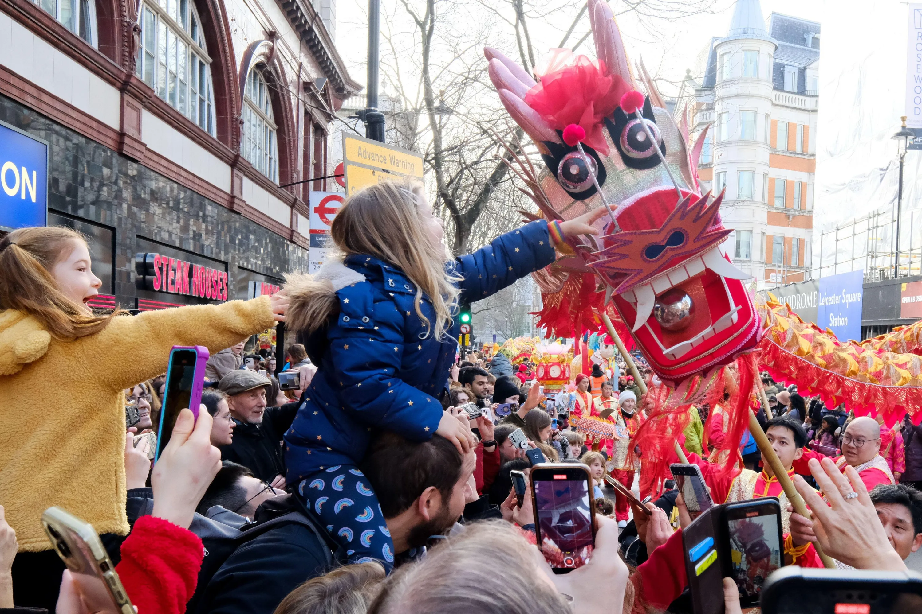 Chinese New Year: Year of the Dragon in London, UK on February 11, 2024. Lunar New Year Parade in Chinatown. (Photo by Matthew Chattle/Alamy Live News)
