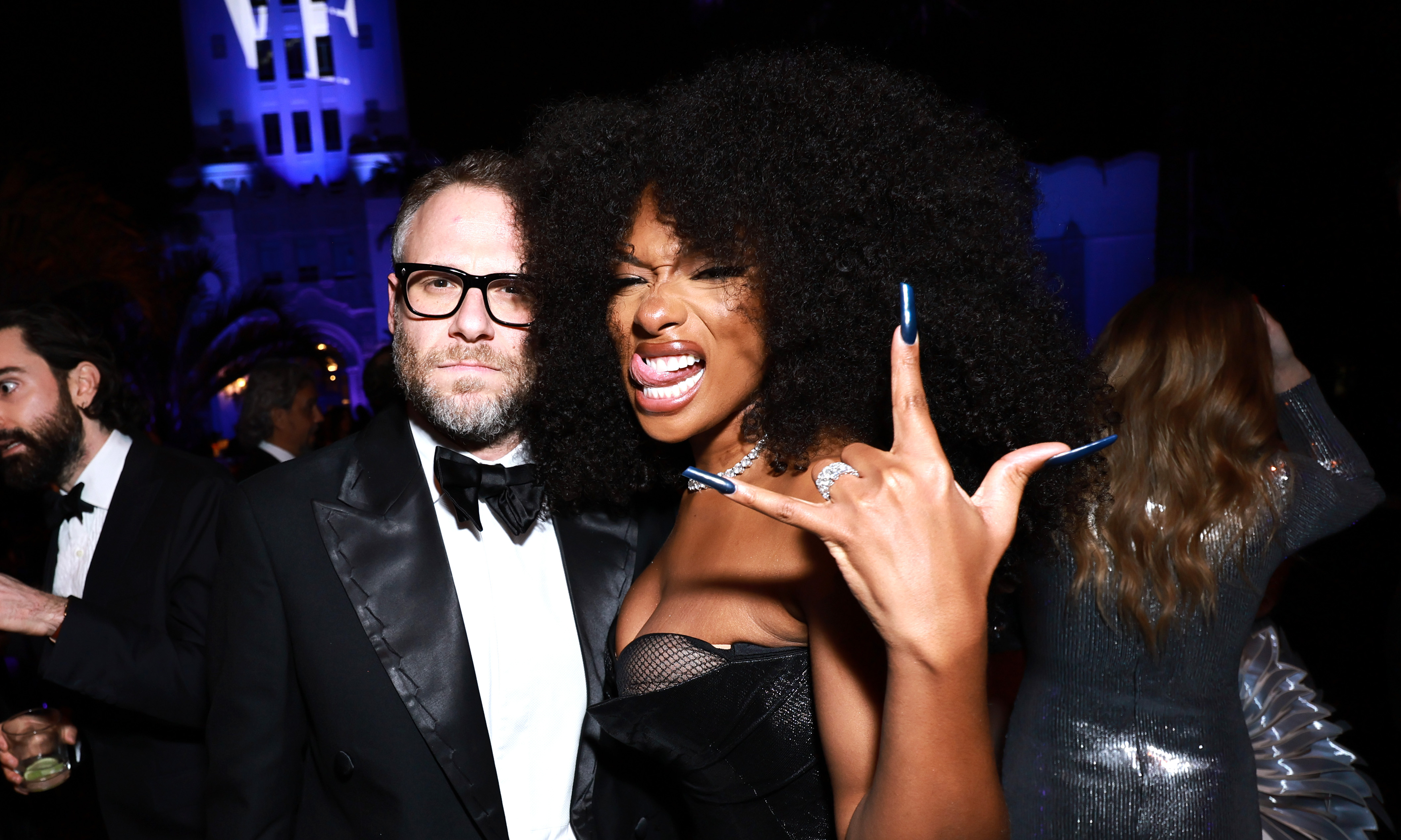 Canadian actor Seth Rogen and American rapper Megan Thee Stallion attend the 2023 Vanity Fair Oscar Party Hosted By Radhika Jones at Wallis Annenberg Center for the Performing Arts on March 12, 2023 in Beverly Hills, California. (Photo by Matt Winkelmeyer/VF23/WireImage for Vanity Fair)