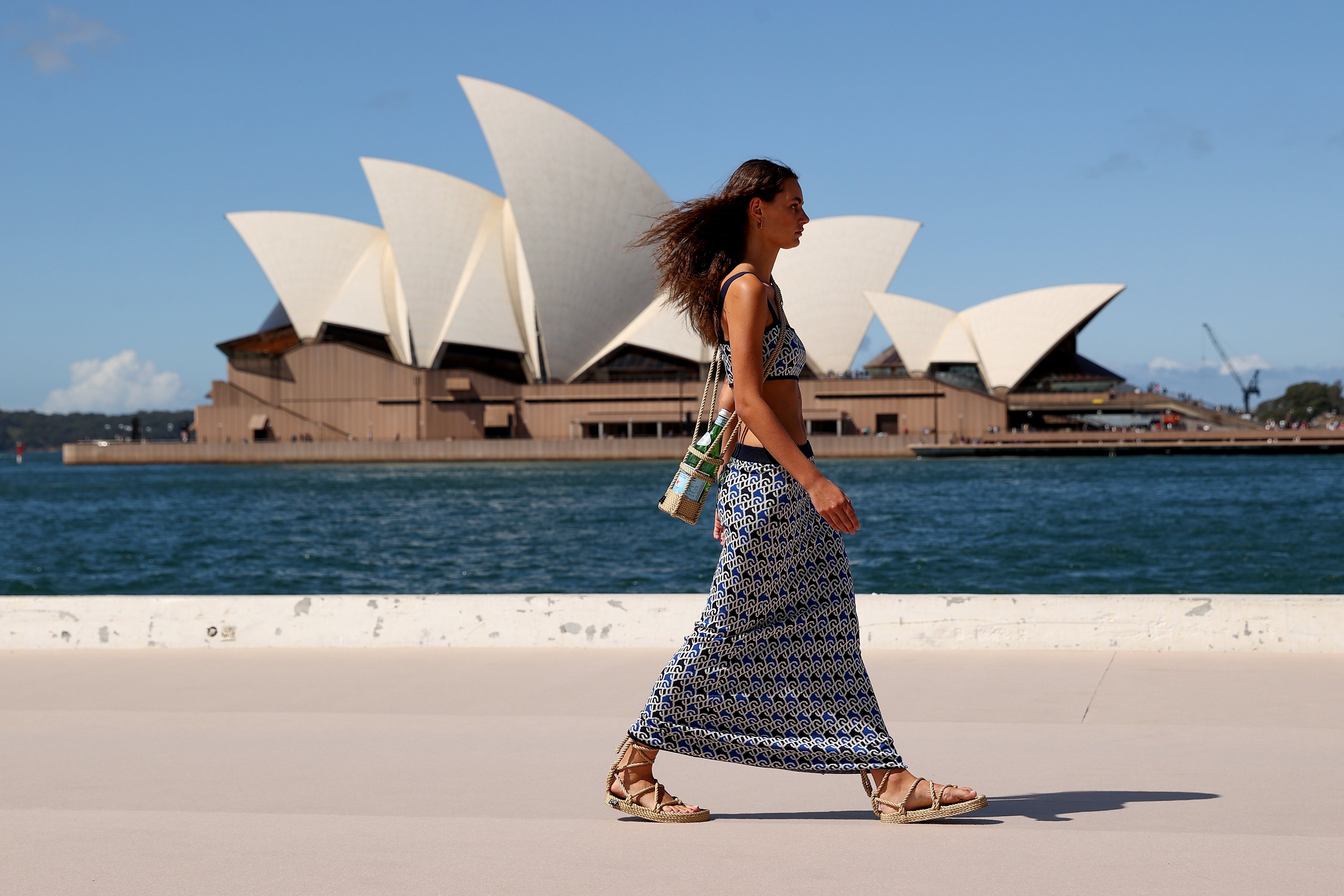 A model walks the runway during the Shona Joy “Le Long de la Côte” collection launch runway on September 21, 2023 in Sydney, Australia. (Photo by Brendon Thorne/Getty Images)