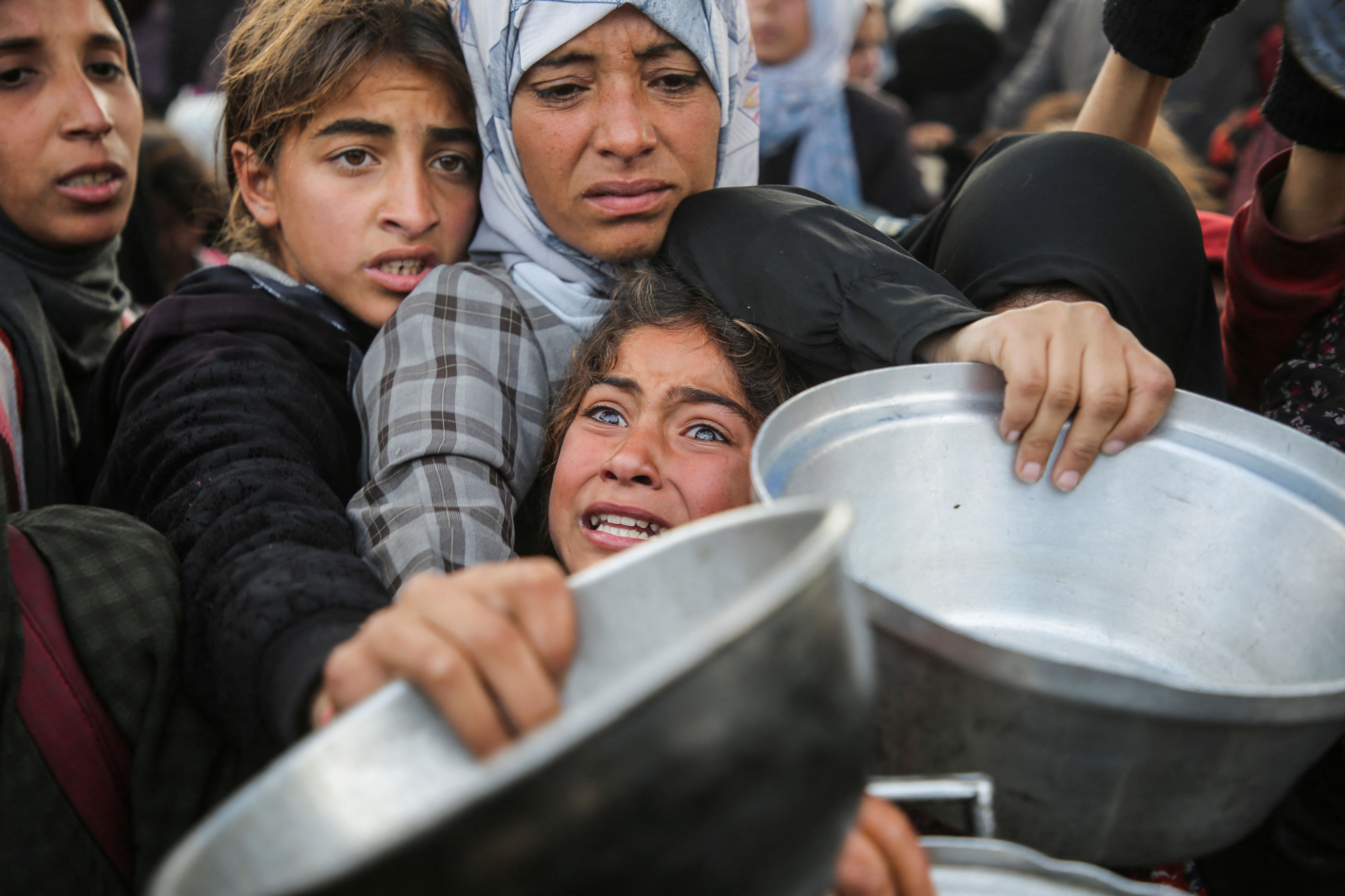 Palestinians gather to receive food cooked by a charity kitchen, before a ceasefire between Hamas and Israel takes effect, in Khan Younis, in the southern Gaza Strip, on January 17, 2025. (Photo by Hatem Khaled/Reuters)