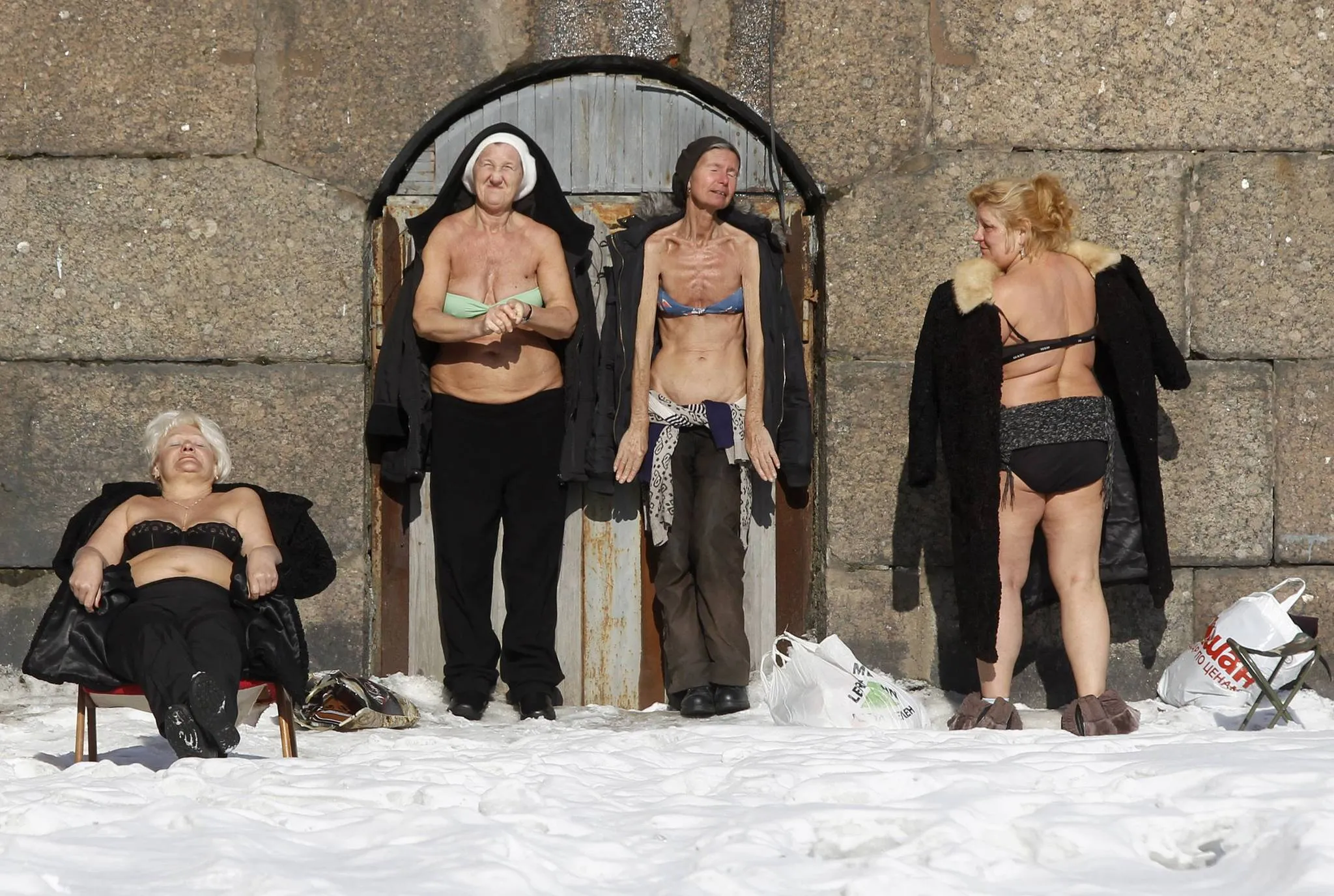 People sunbathe by the wall of the Peter and Paul Fortress in St. Petersburg March 10, 2013. (Photo by Alexander Demianchuk/Reuters)