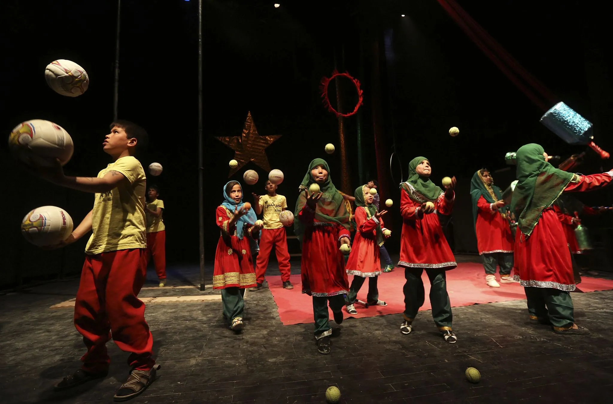 Afghan children from the Mobile Mini Circus Children (MMCC) perform during a show at the French Culture center in Kabul, March 13, 2013. (Photo by Omar Sobhani/Reuters)