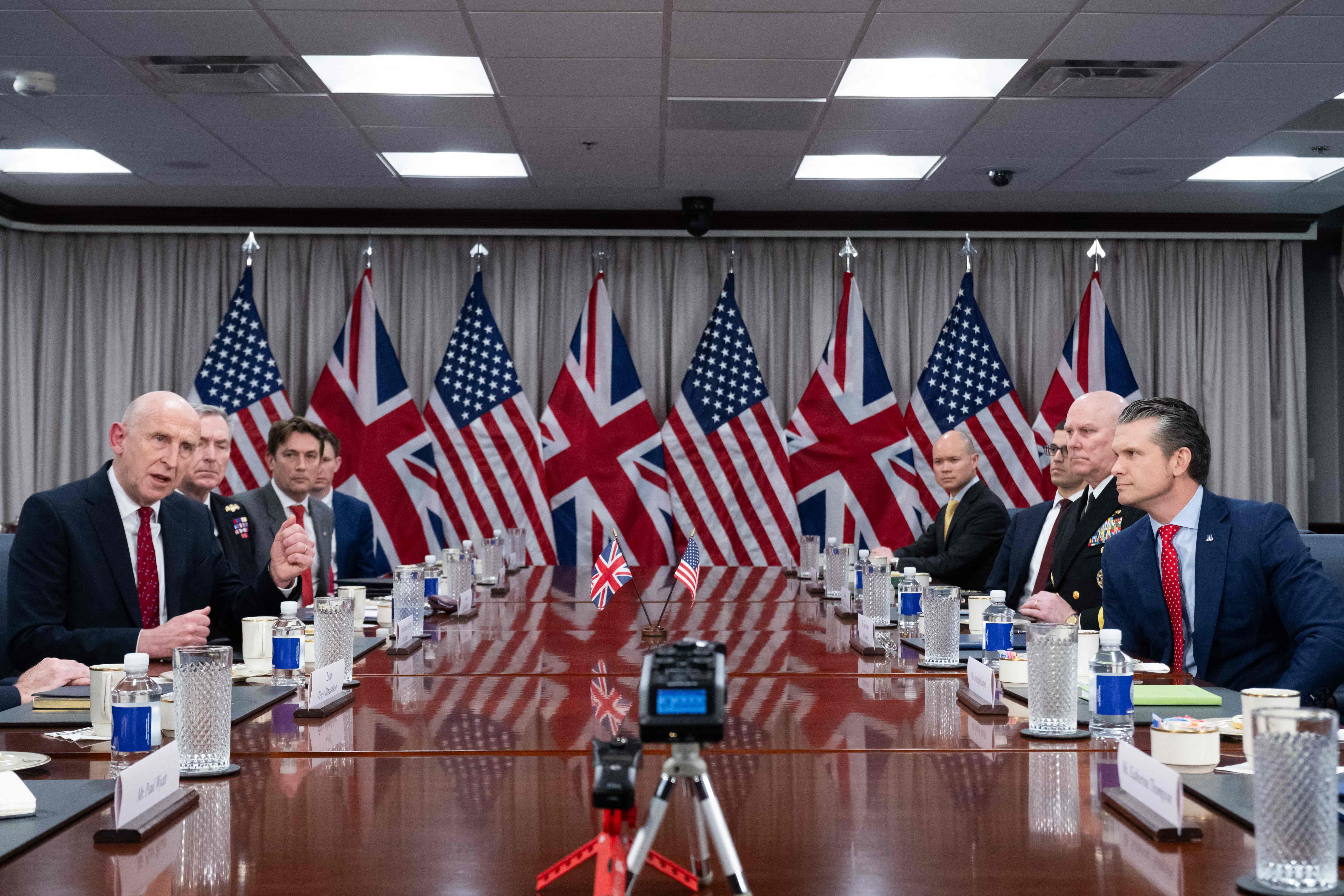 US Secretary of Defense Pete Hegseth (R) meets with British Secretary of State for Defence John Healey (L) at the Pentagon in Washington, DC, on March 6, 2025. (Photo by Saul Loeb/AFP Photo)