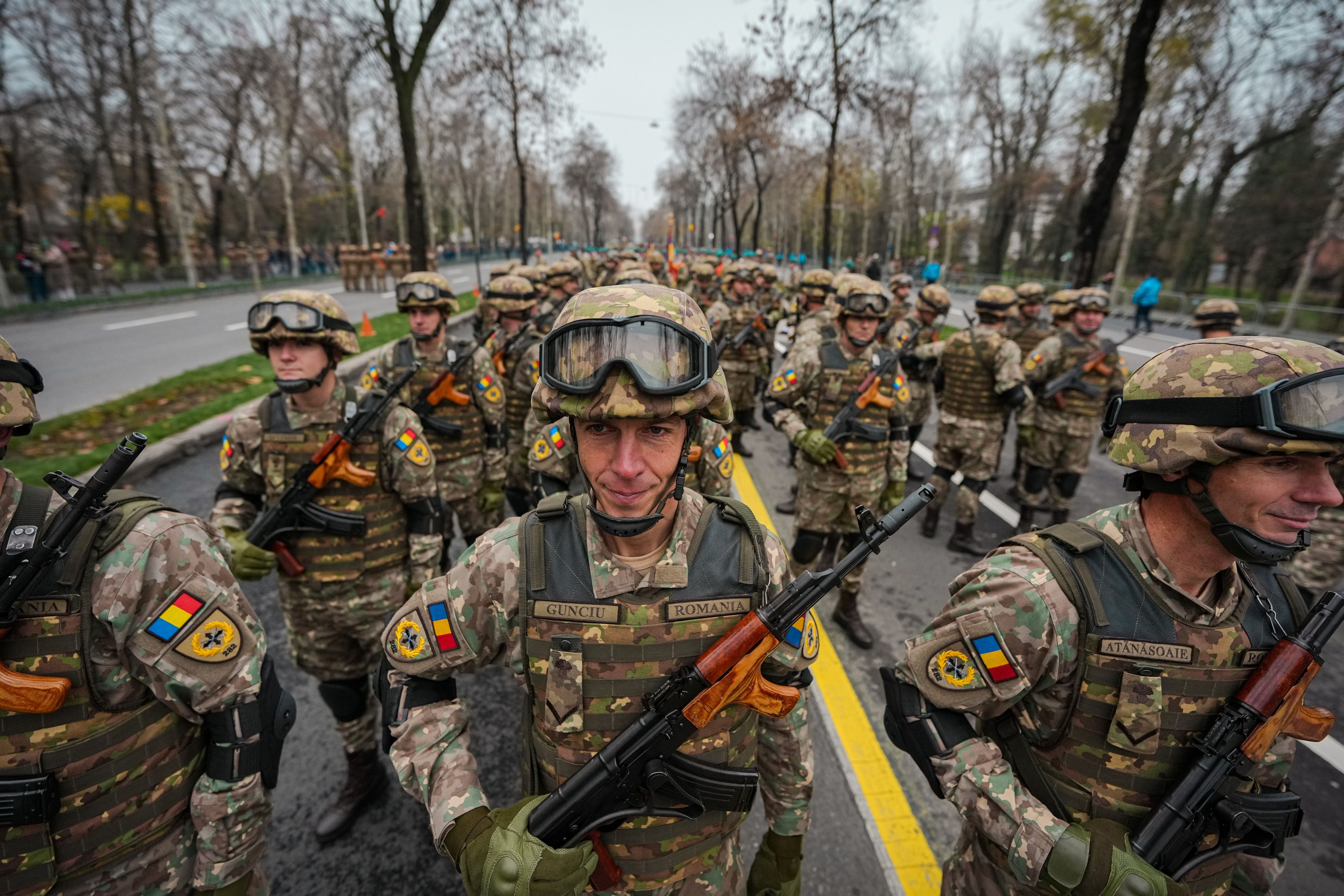 Romanian servicemen stand in formation before the national day military parade, in Bucharest, Romania, Monday, December 1, 2025. (Photo by Andreea Alexandru/AP Photo)