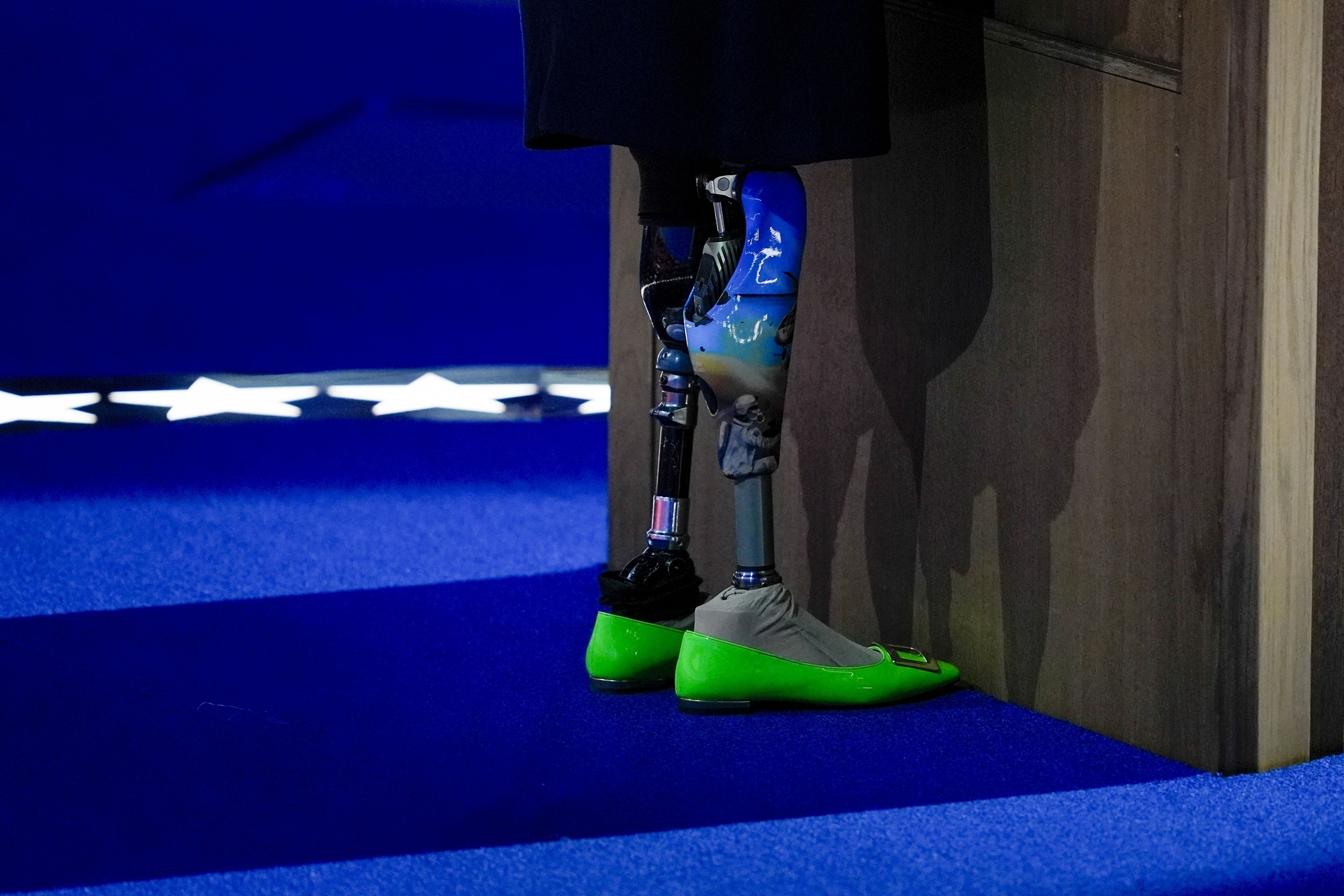Sen. Tammy Duckworth, D-Ill., speaks during the Democratic National Convention Tuesday, August 20, 2024, in Chicago. (Photo by Matt Rourke/AP Photo)