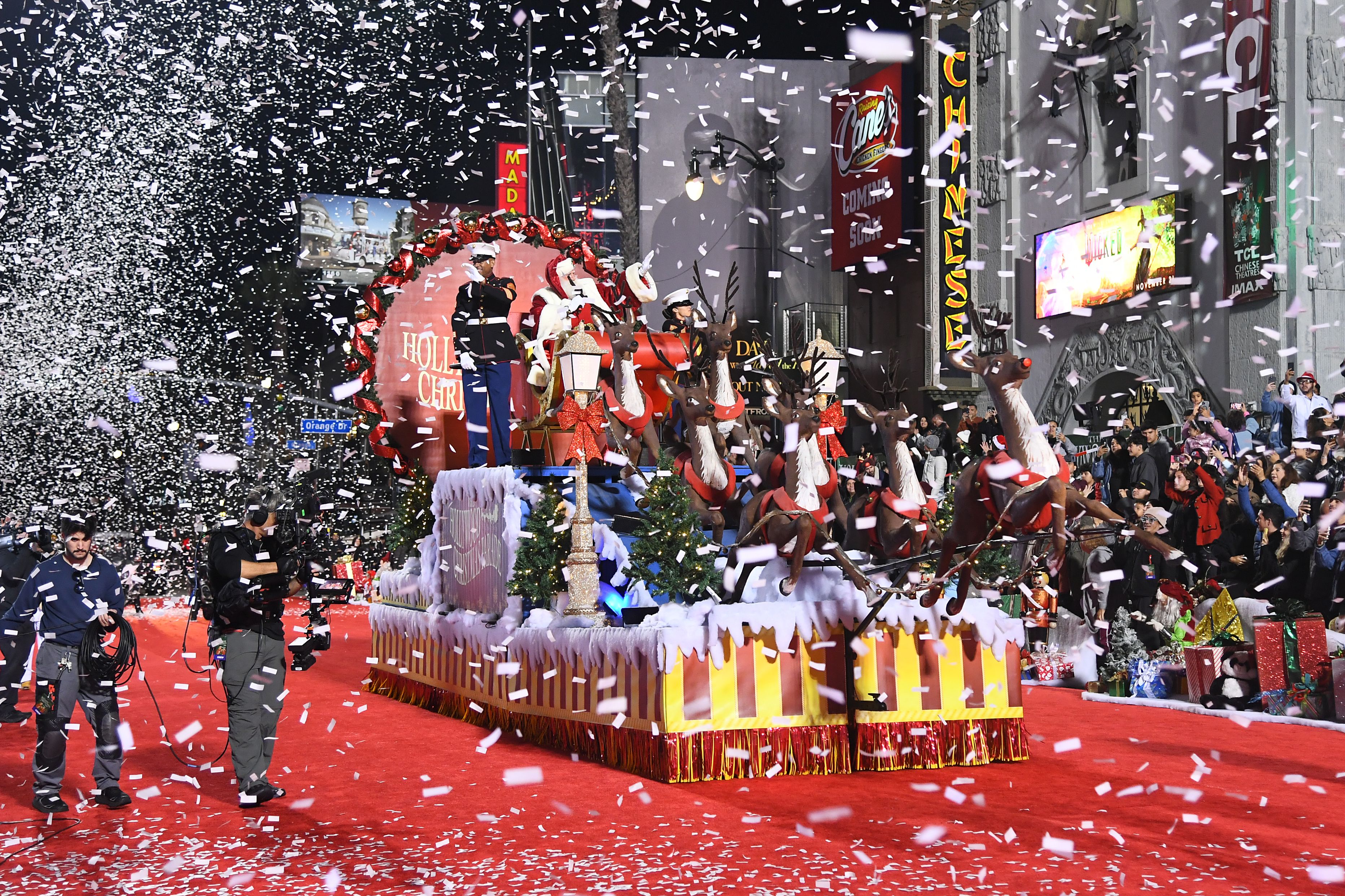 Marines for Toys For Tots and Cortney Lofton dressed as Santa Claus are seen during the 93rd Annual Hollywood Christmas Parade with Grand Marshal Luke Wilson in Support of Marine Toys for Tots Live Parade on November 30, 2025 in Hollywood, California. (Photo by Alberto E. Rodriguez/Getty Images for Hollywood Christmas Parade)