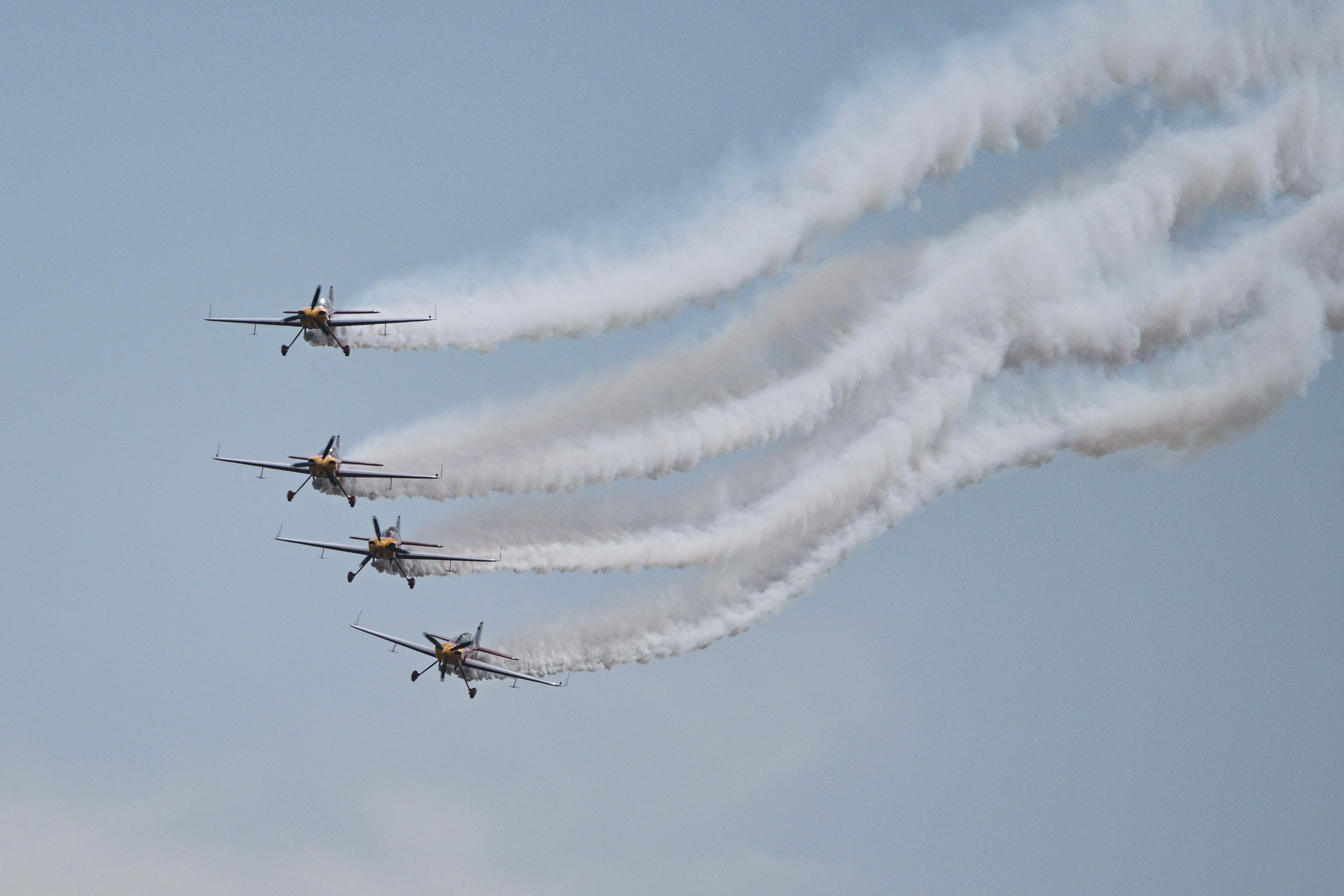 The Marksmen aerobatic team from South Africa performs during the Aero Asia 2025 in Zhuhai, in southern China's Guangdong province on November 27, 2025. Aero Asia 2025 is an international aviation and aerospace exhibition that runs between November 27 and 30. (Photo by Hector Retamal/AFP Photo)