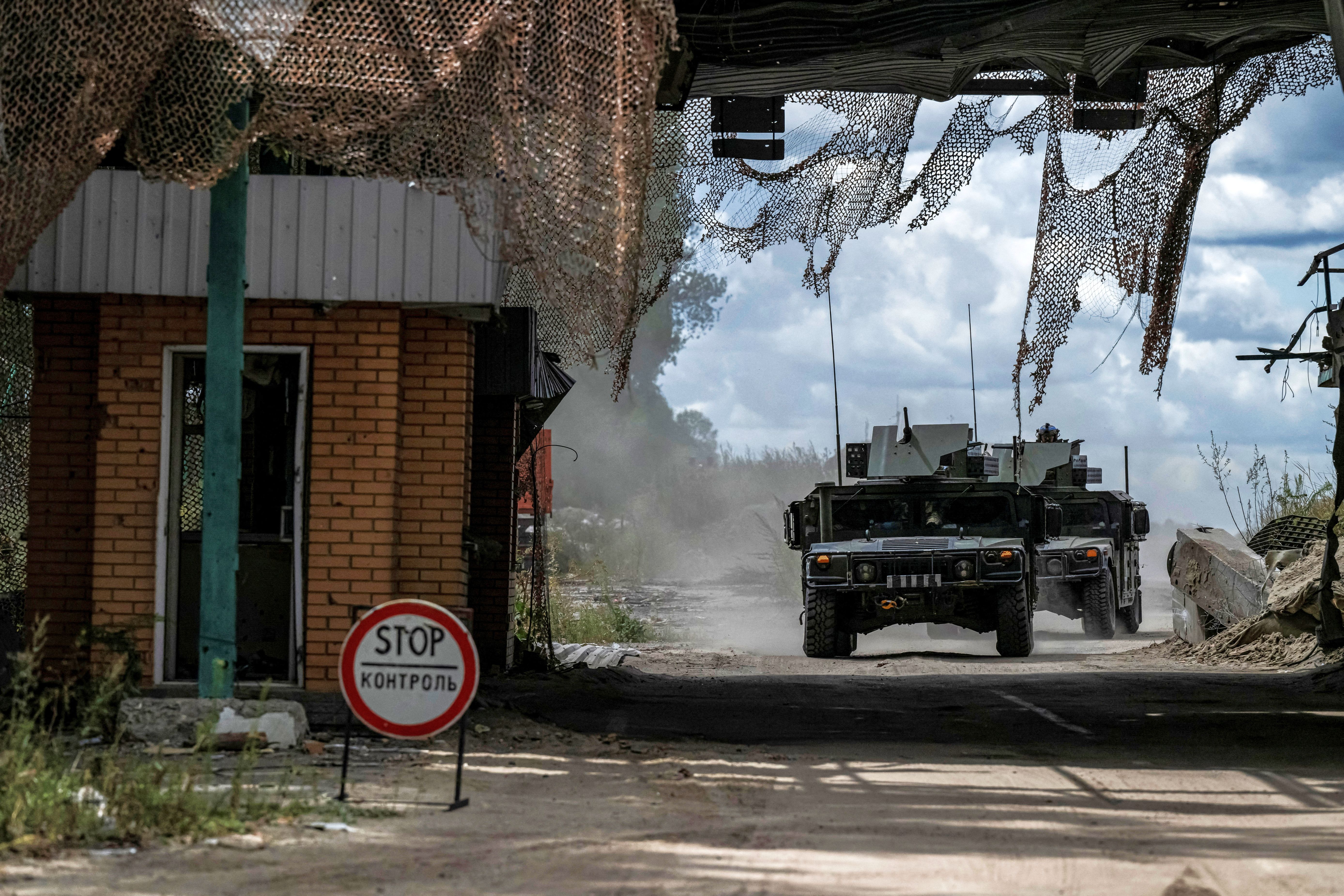 Ukrainian servicemen ride military vehicles from a crossing point at the border with Russia, in Sumy region, Ukraine on August 13, 2024. (Photo by Viacheslav Ratynskyi/Reuters)