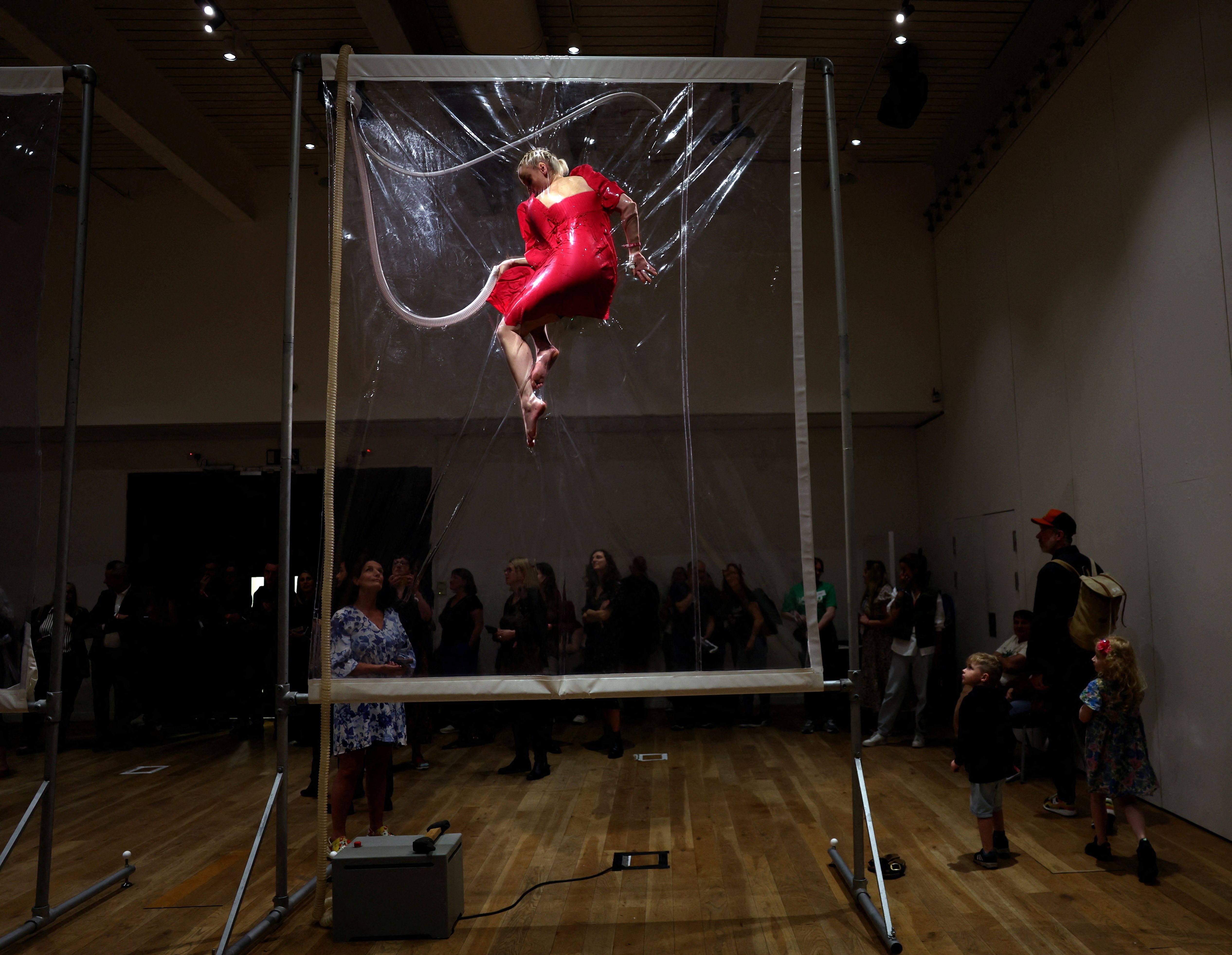 People view an interactive art installation titled “Shrink 01995”, by the Belgian artist Lawrence Malstaf, at the Hancock Museum in Newcastle, Britain on August 8, 2024. (Photo by Lee Smith/Reuters)