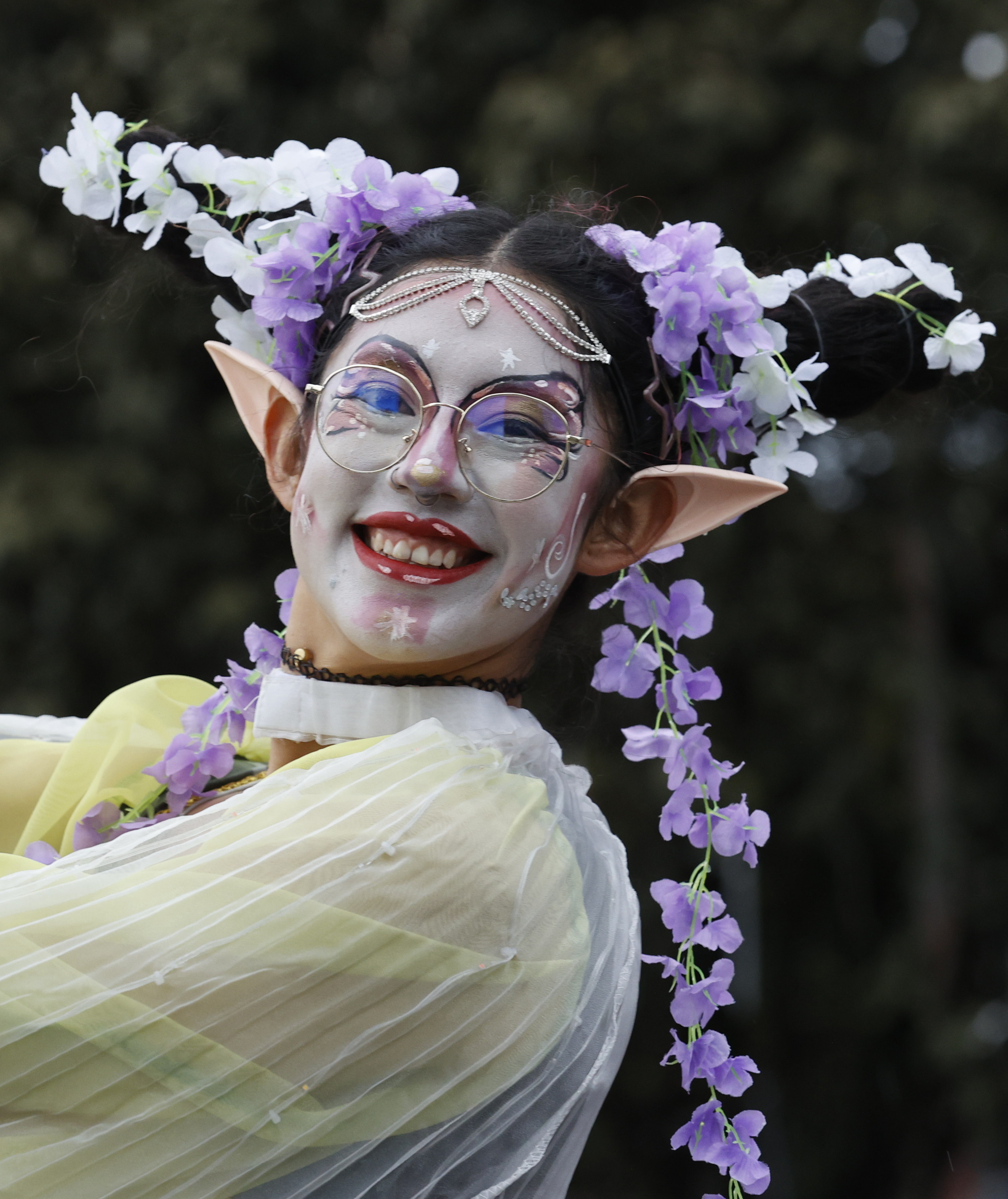 An artist participates in a Christmas parade during the commemoration of the dogma of the Immaculate Conception of the Virgin Mary, known in Colombia as “El Día de Velitas” (Little Candles' Day), in Bogota, Colombia, 07 December 2025. (Photo by Mauricio Duenas Castaneda/EPA)