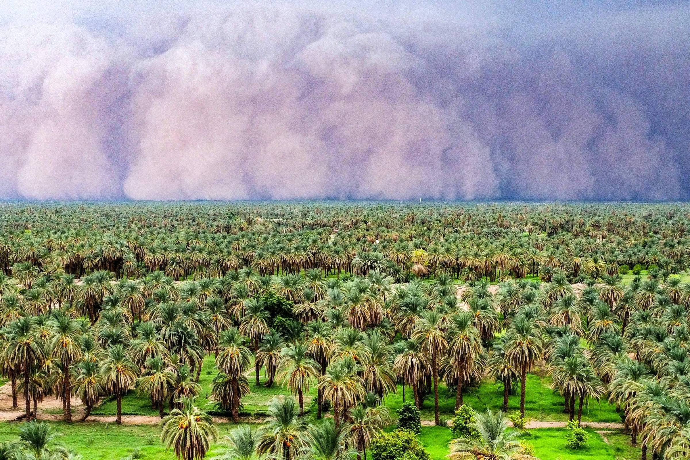 A gigantic cloud of dust known as “Haboob” advances over palm groves in Dongola in Sudan's Northern State on August 30, 2024. (Photo by AFP Photo/Stringer)