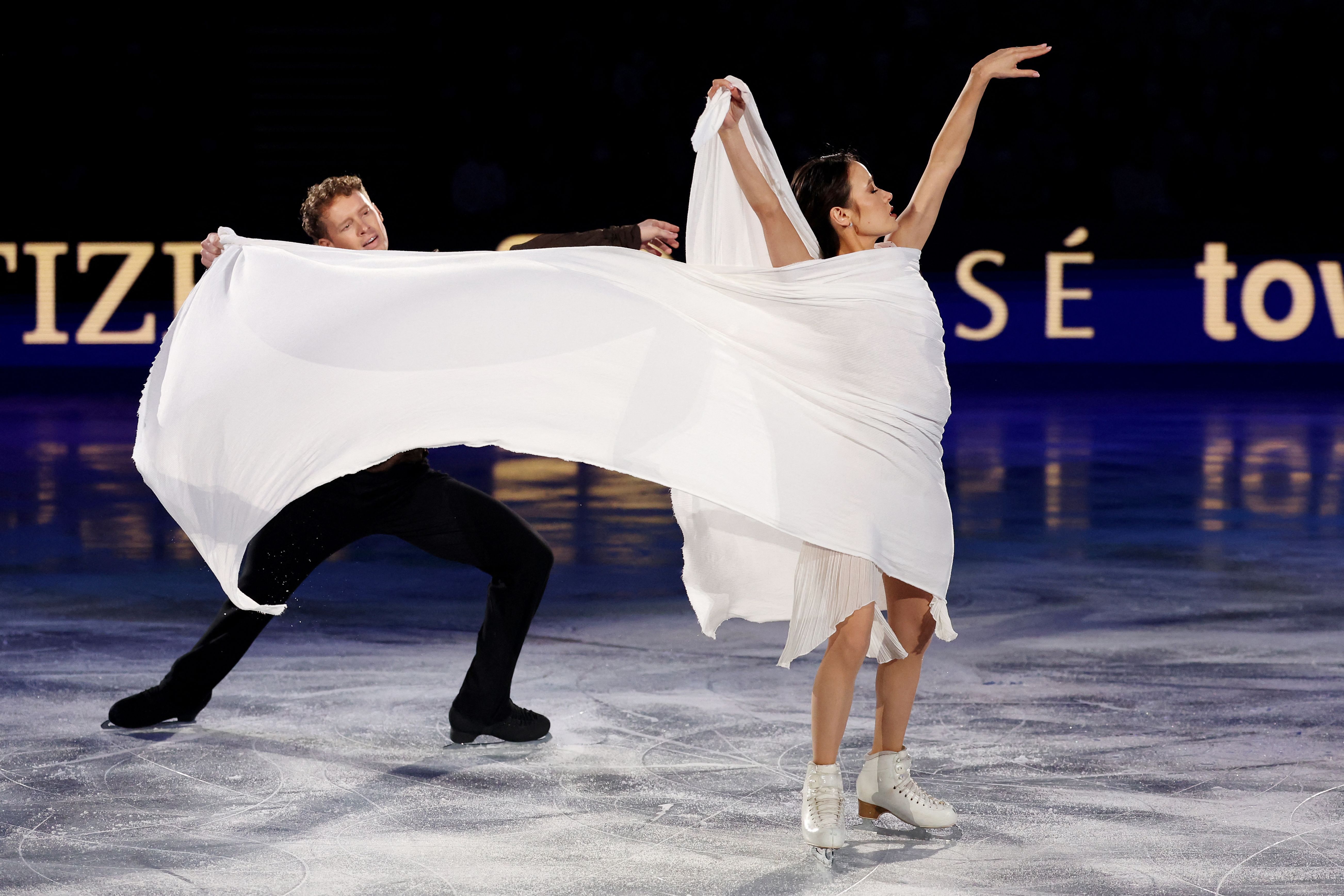 USA's Madison Chock and Evan Bates perform in the exhibition gala at the ISU Grand Prix of Figure Skating Final in Nagoya on December 7, 2025. (Photo by Paul Miller/AFP Photo)