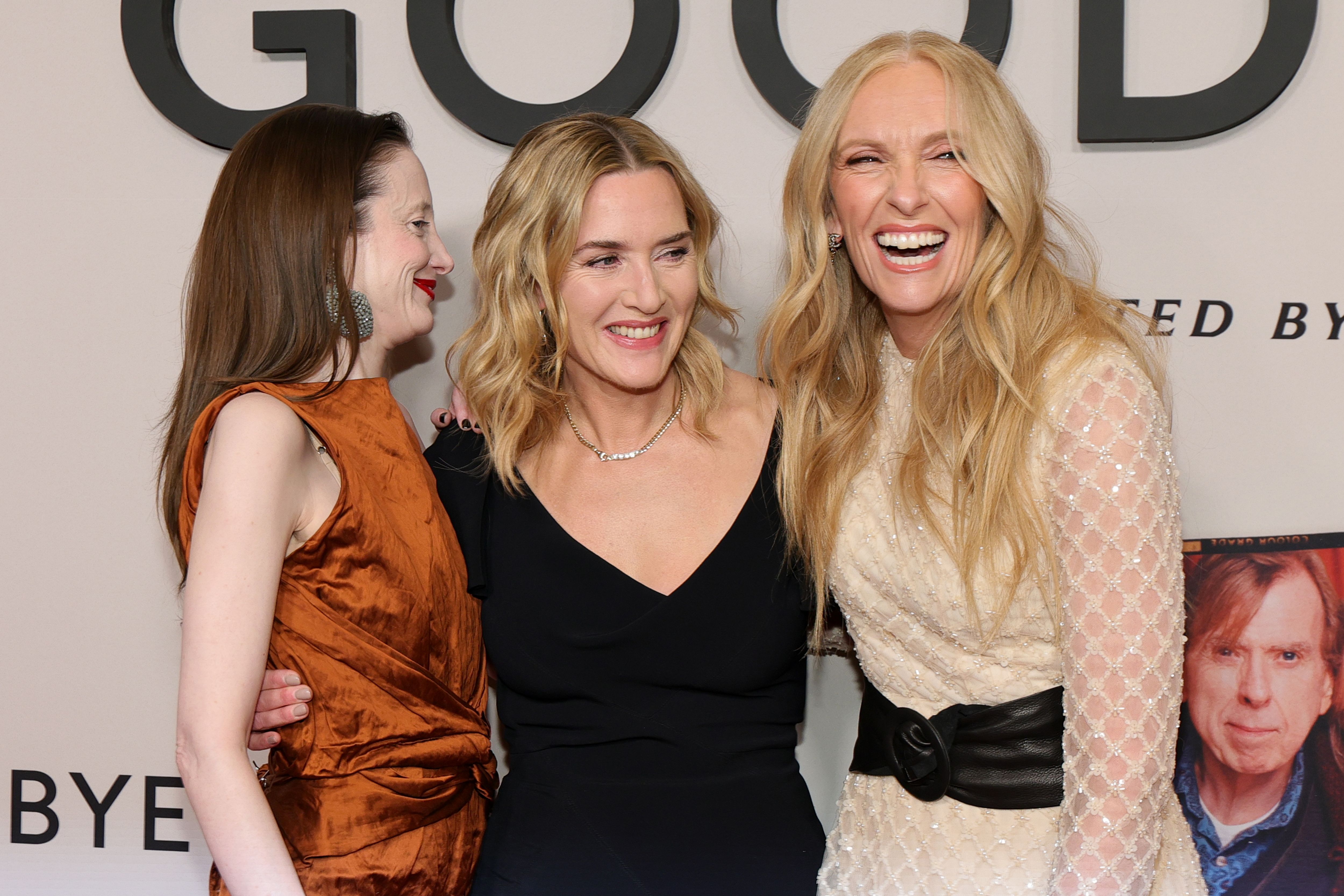 (L-R) Andrea Riseborough, Kate Winslet and Toni Collette attend Netflix's “Goodbye June” New York Screening at Whitby Hotel on December 08, 2025 in New York City. (Photo by Dia Dipasupil/WireImage)