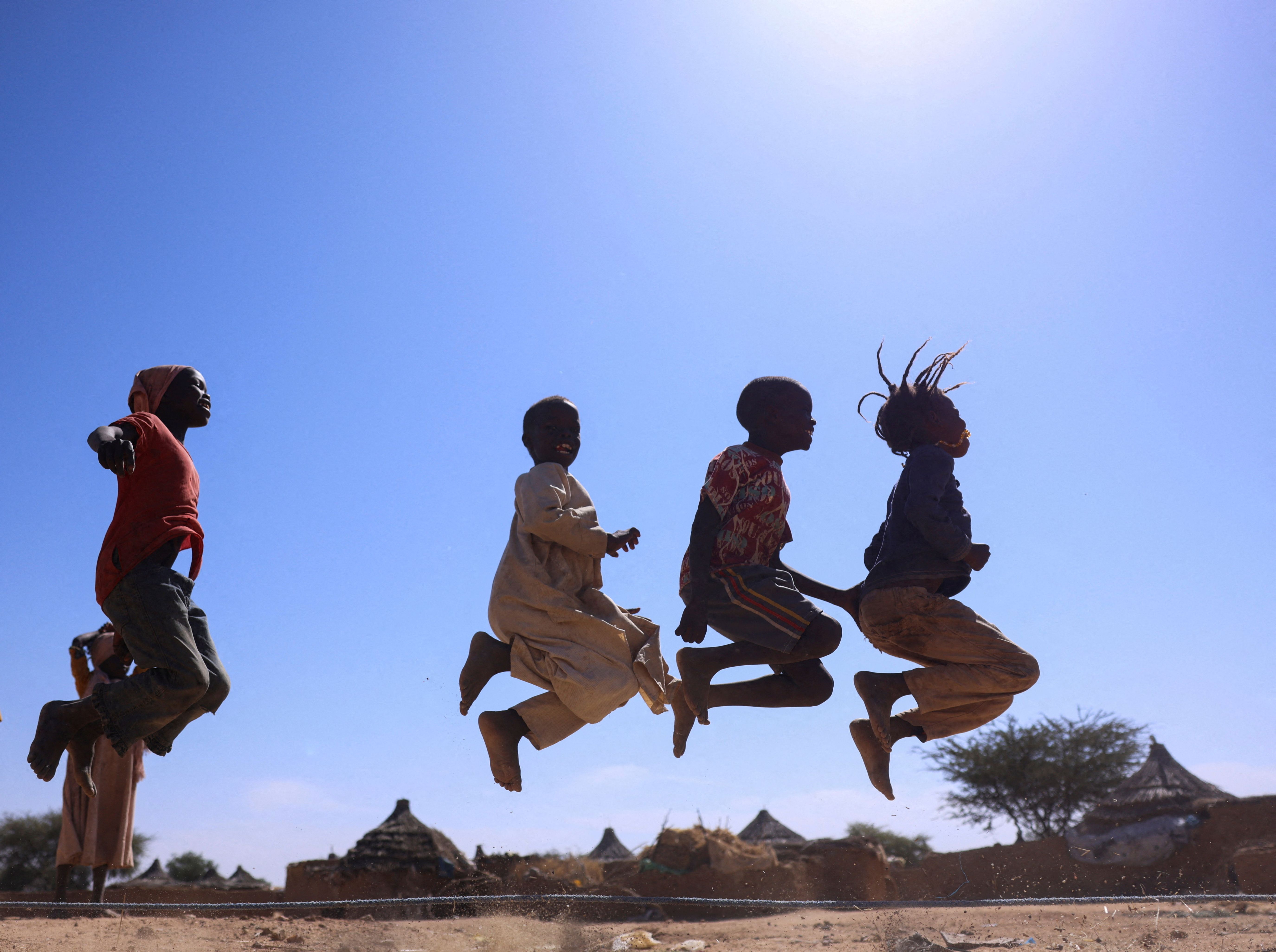 Sudanese refugee children from Darfur play a Jump Rope game, amid ongoing conflict in their country, at the Iridimi refugee camp, northwest of the town of Iriba, in Wadi Fira province, eastern Chad, on November 28, 2025. (Photo by Amr Abdallah Dalsh/Reuters)