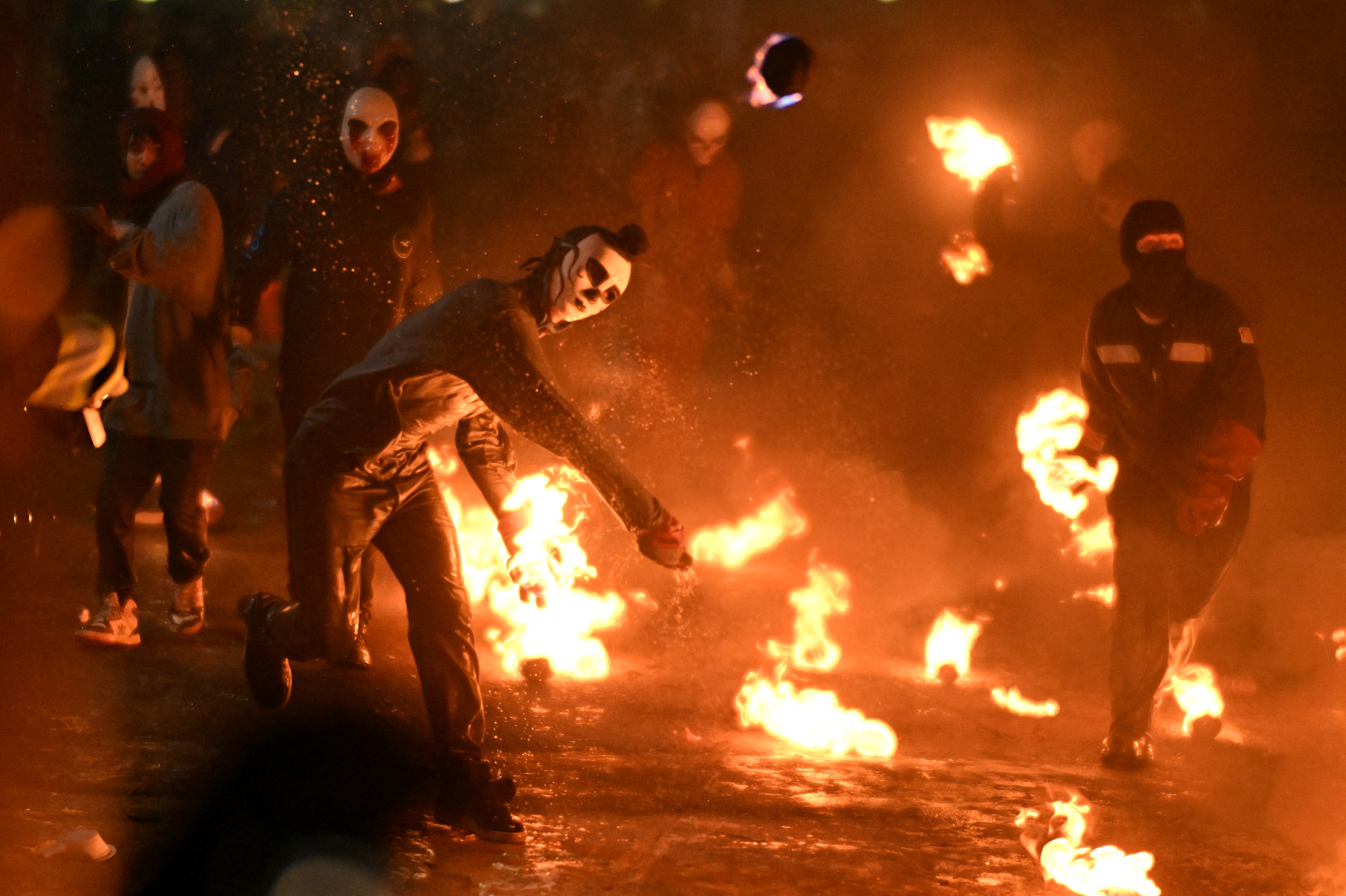 Masked youth participate in the "Fireball Festival" in Nejapa, El Salvador, on August 31, 2024. The traditional festival, dating from 1922, is held in honour of Saint Jeronimo and recalls the 1658 eruption of the San Salvador volcano that destroyed Nejapa. (Photo by Marvin Recinos/AFP Photo)