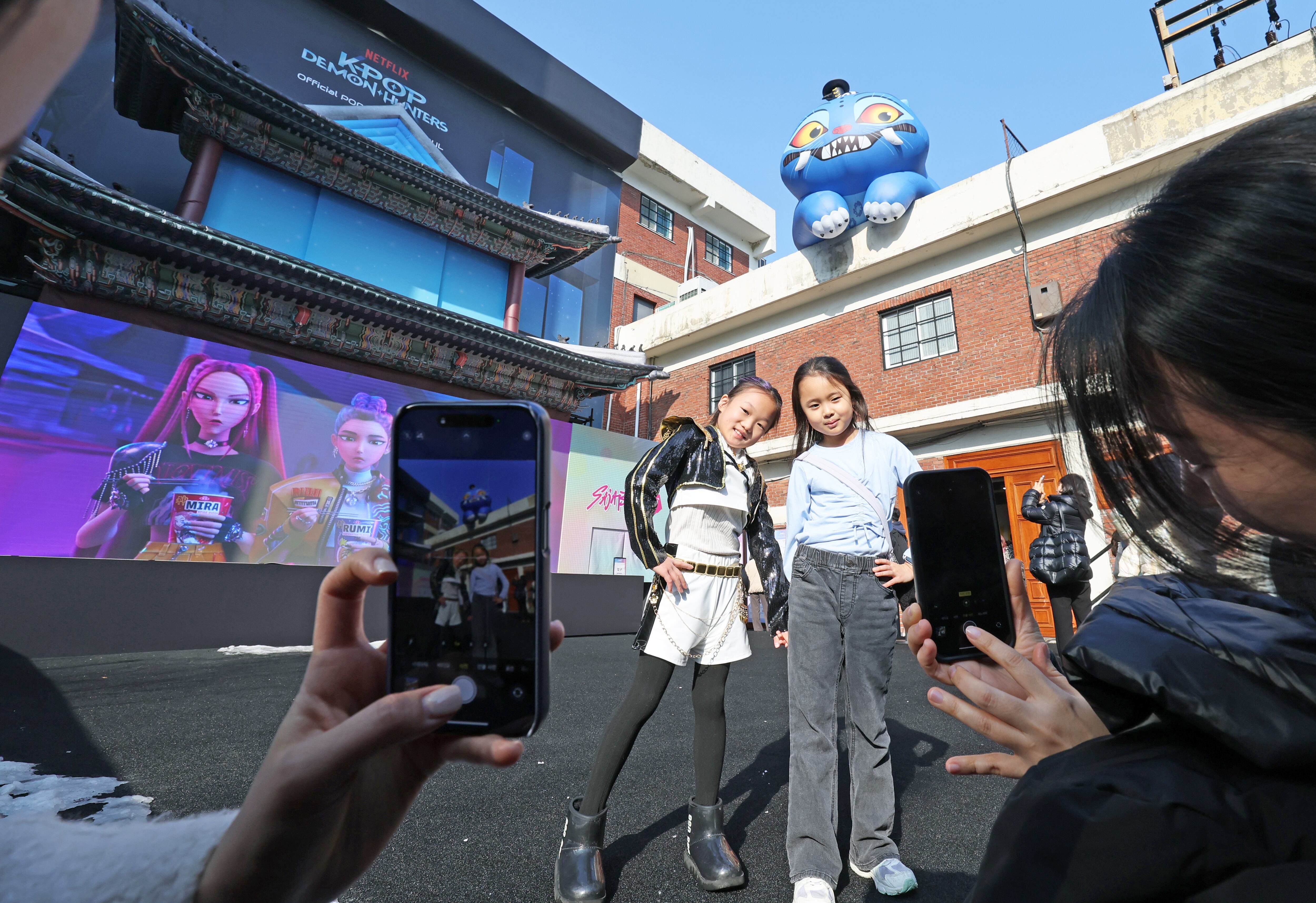 Children who visited the K-Pop Demon Hunters pop-up store in Seongdong-gu, Seoul on the December 7, 2025, are taking a commemorative photo in an exhibition hall that recreates a space from an animation. (Photo by Jang Gyeong-sik)